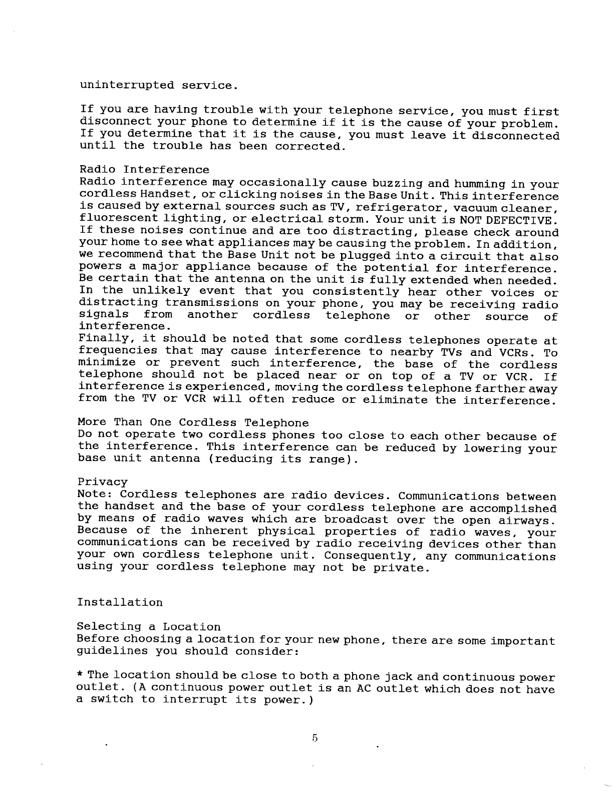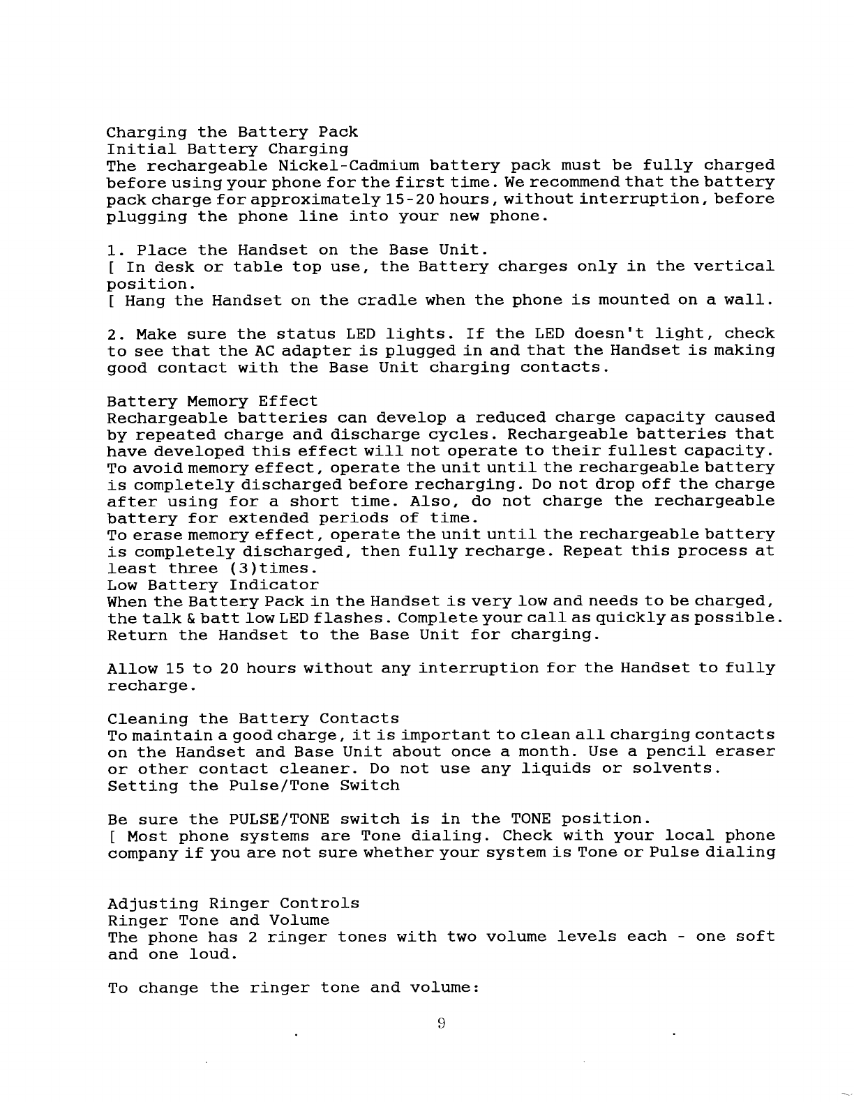 RadioShack Corporation 900 MHz Spread Spectrum Cordless Telephone Draft Owners Manual