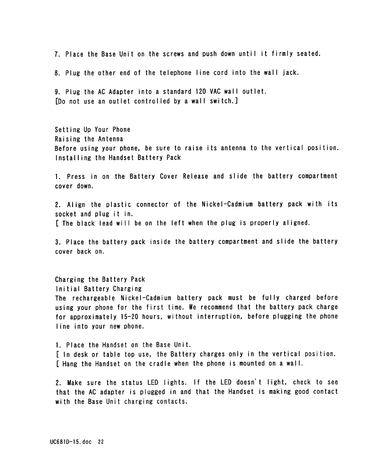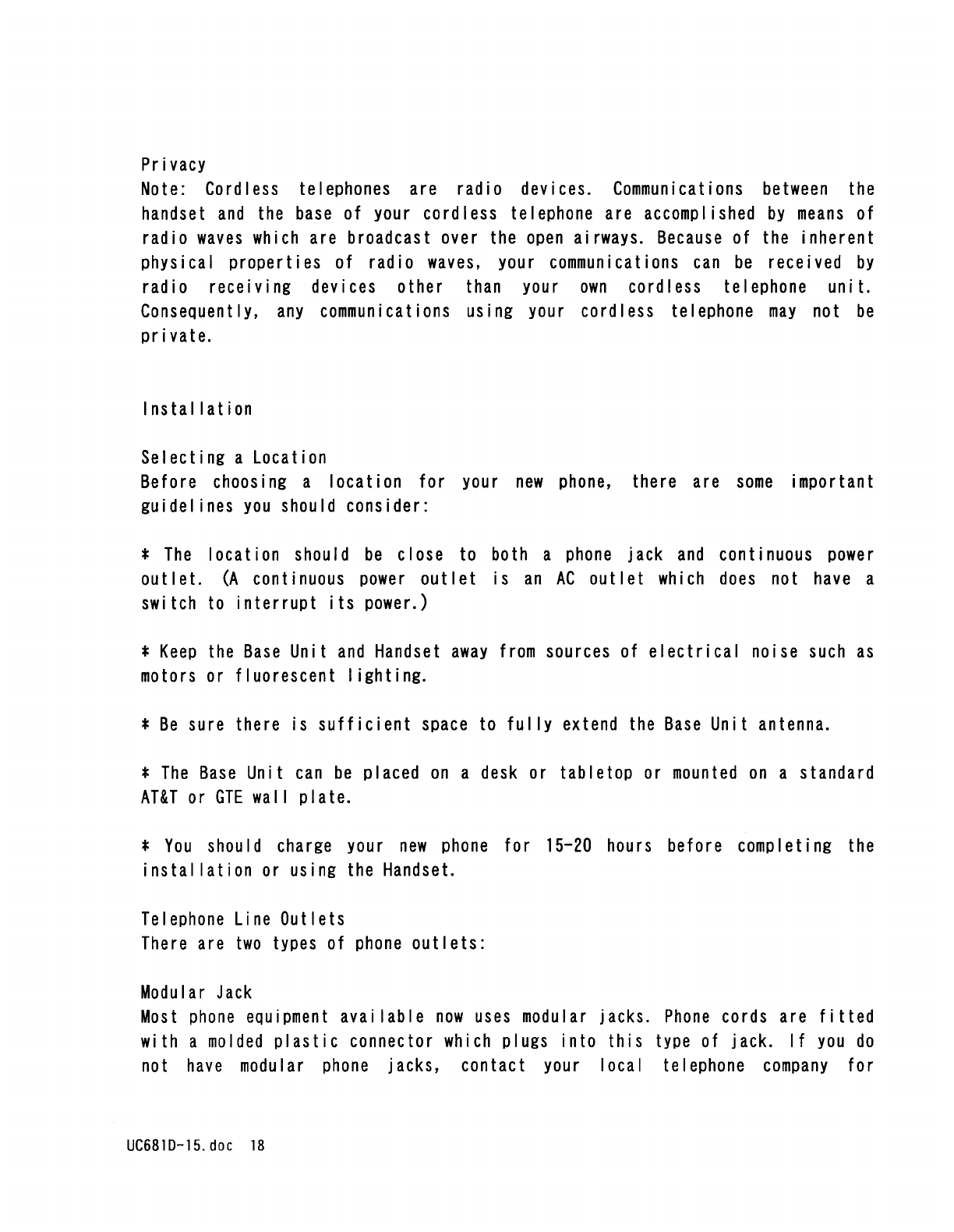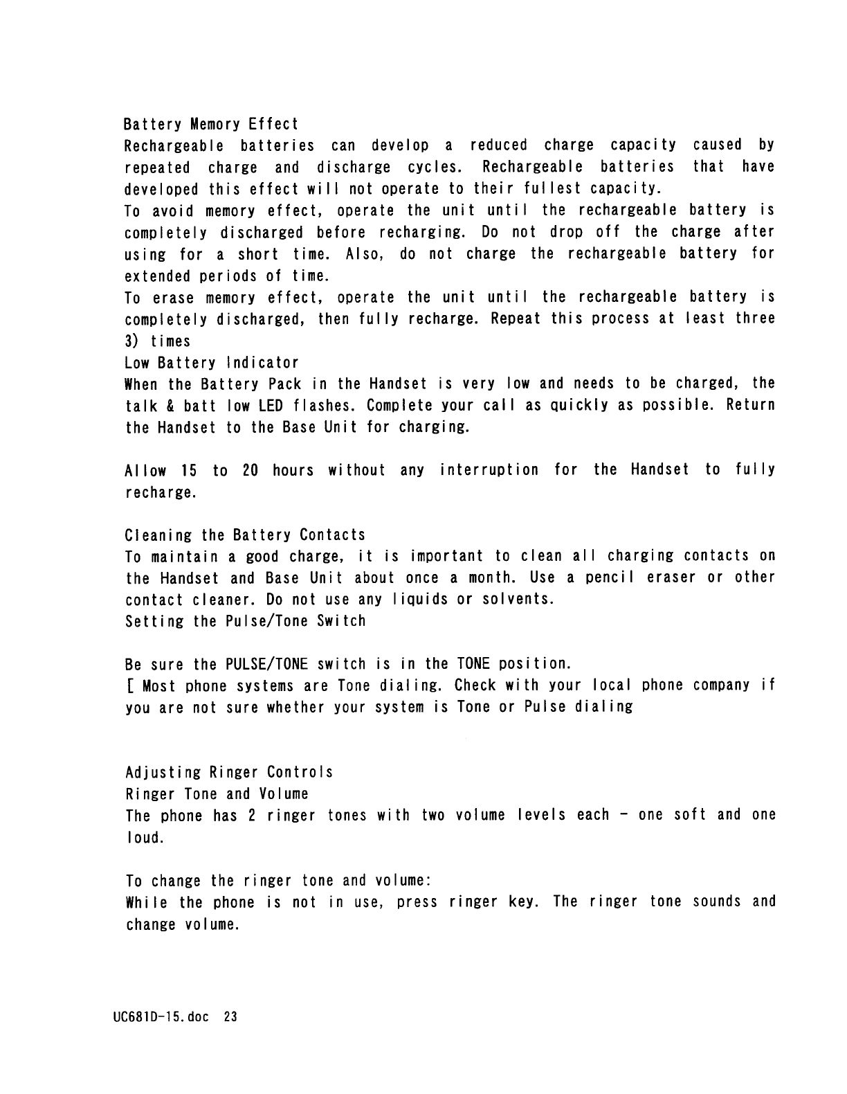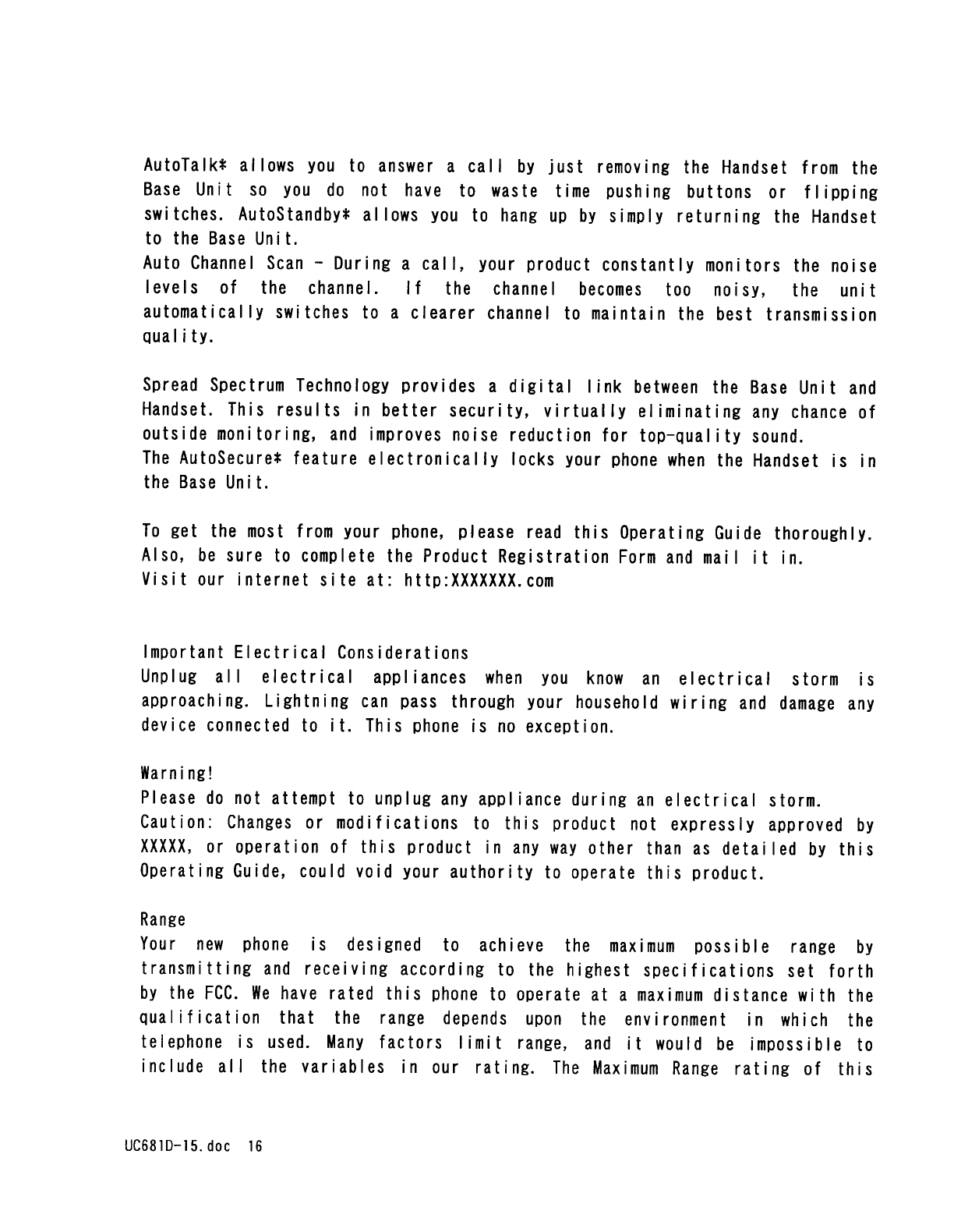 RadioShack Corporation 2.4 GHz Spread Spectrum Cordless Telephone Draft Copy of Owners Manual