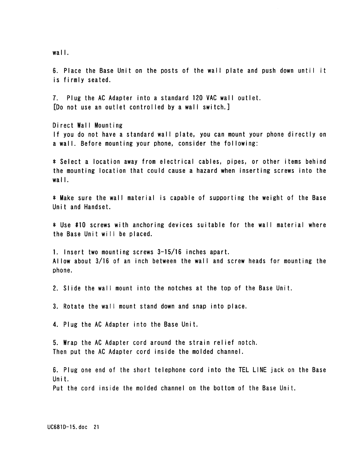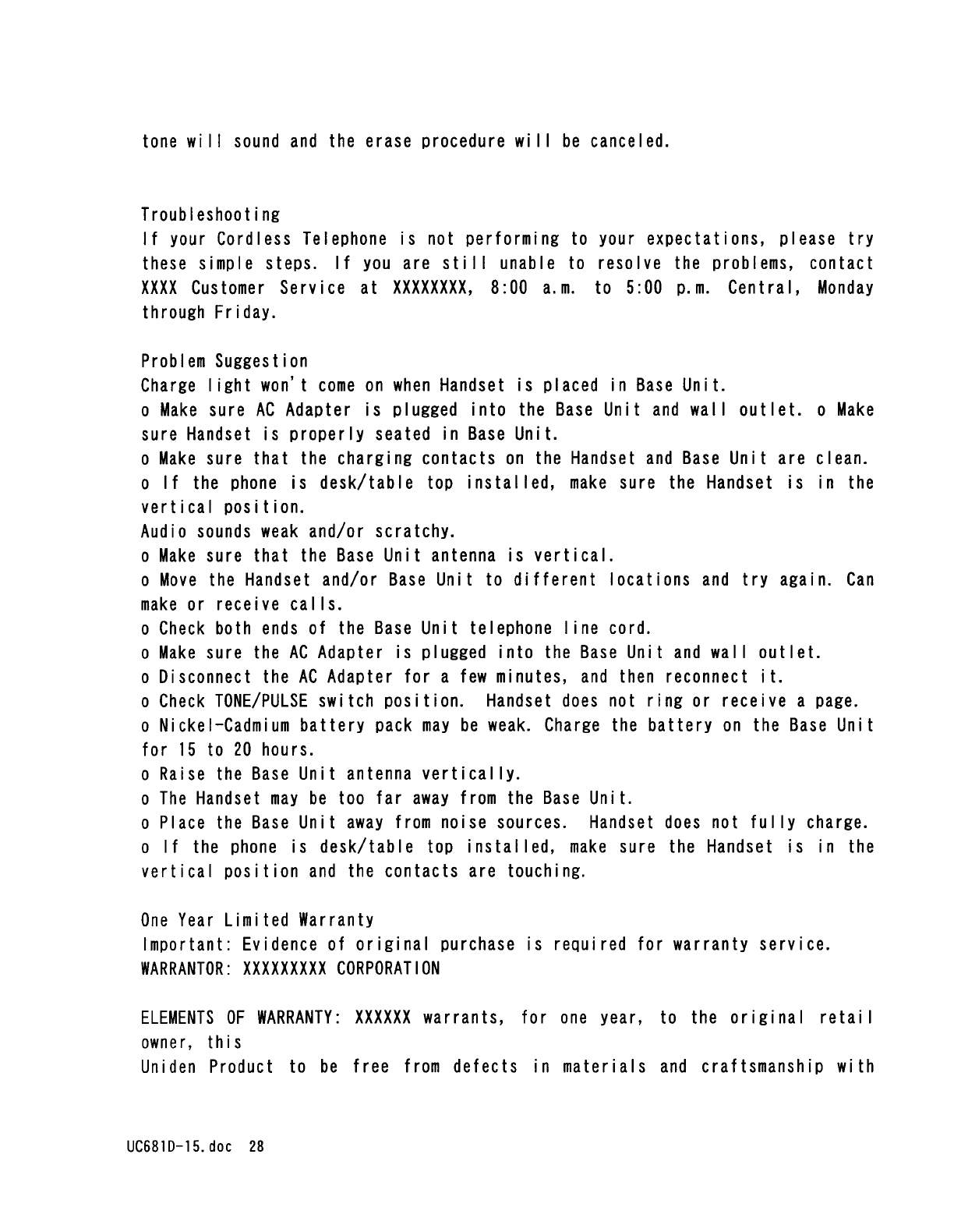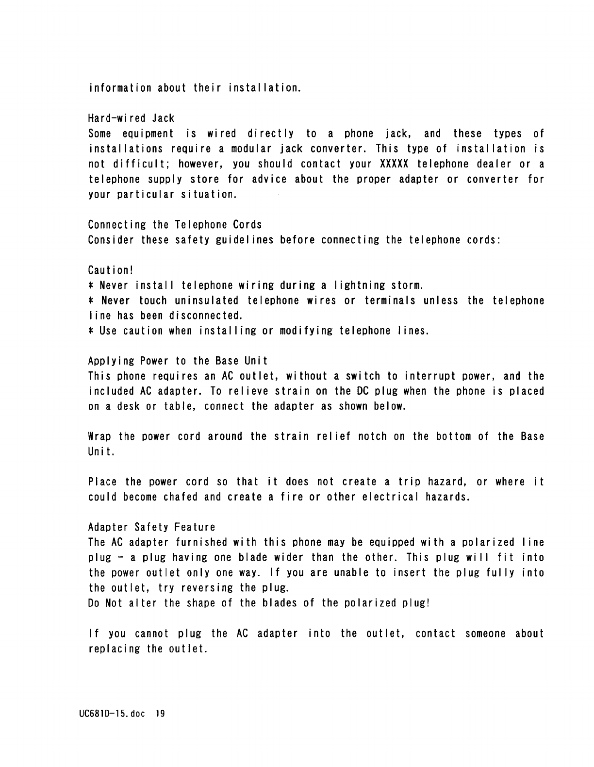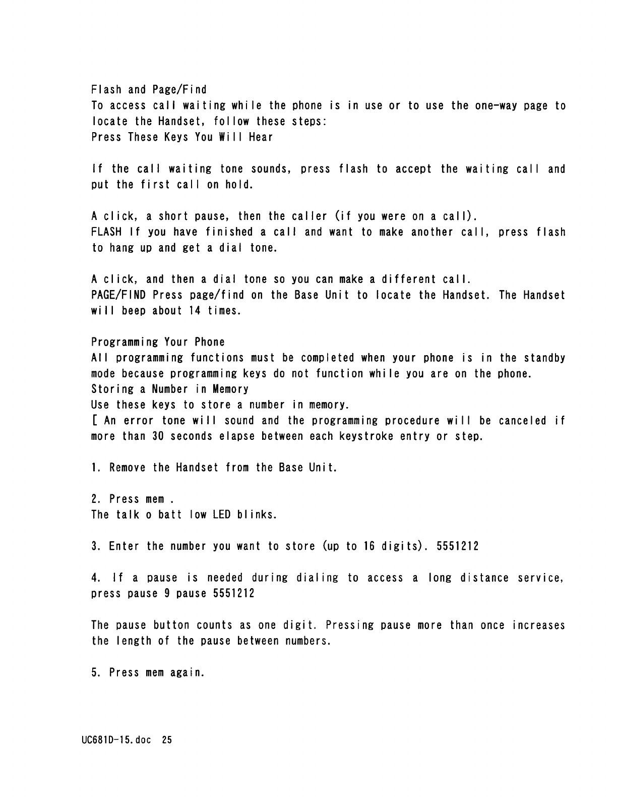 RadioShack Corporation 2.4 GHz Spread Spectrum Cordless Telephone Draft Copy of Owners Manual