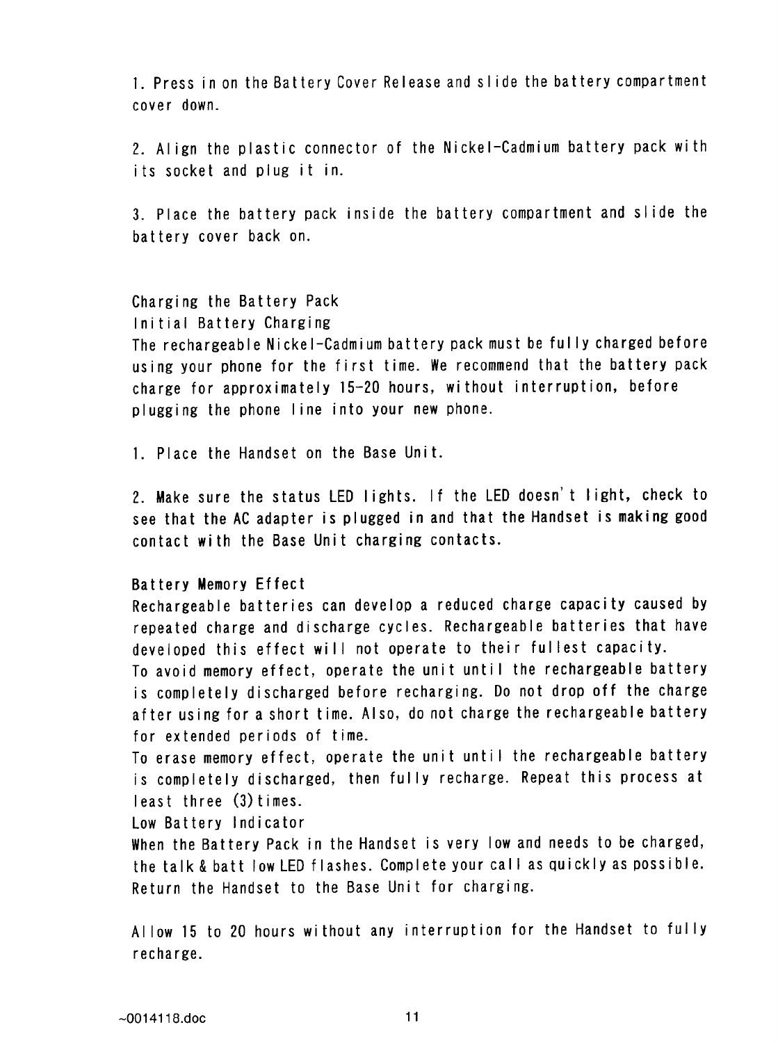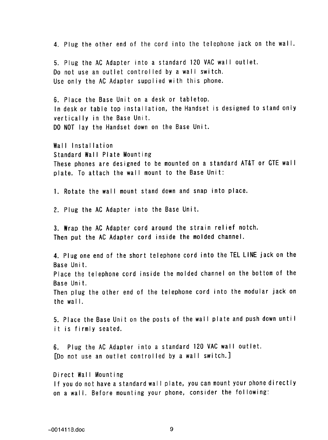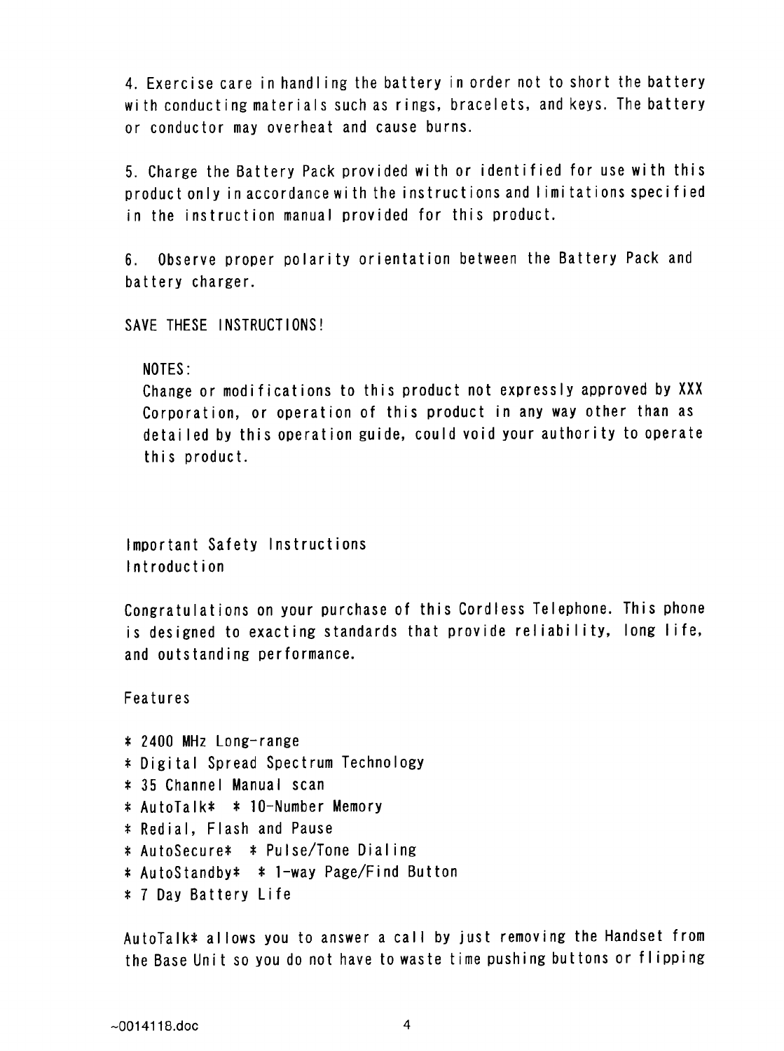 Radio Shack 4301128A Spread Spectrum Cordless Phone User Manual
