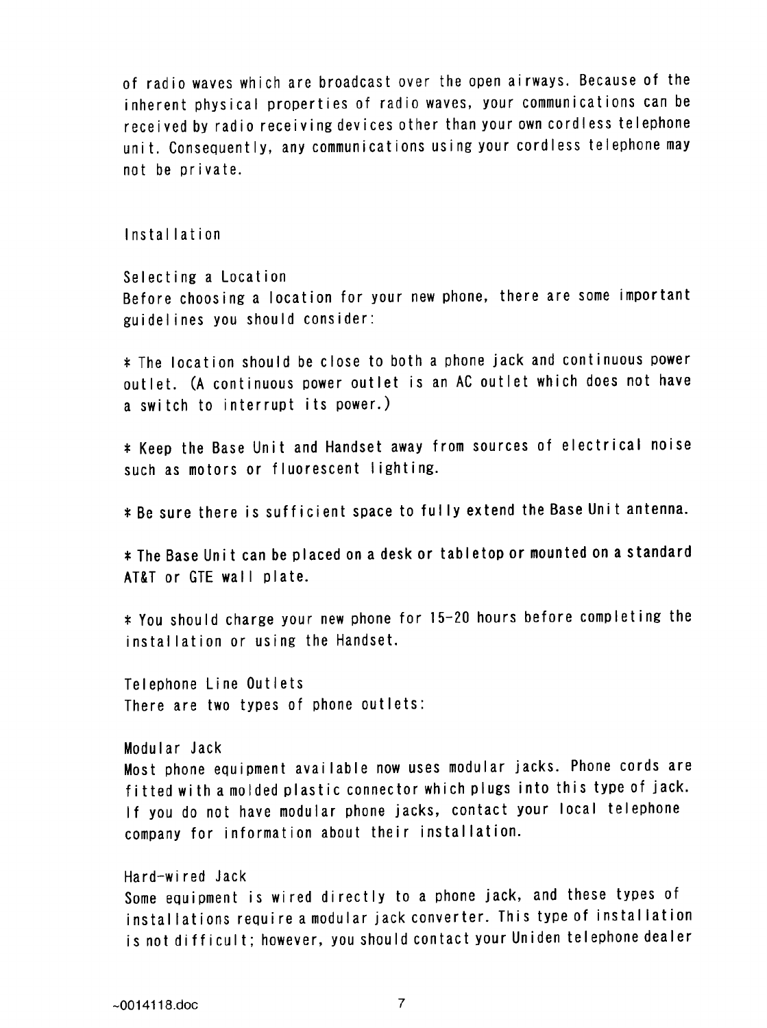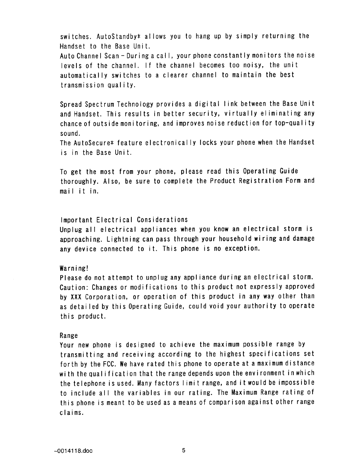 RadioShack Corporation Spread Spectrum Cordless Phone