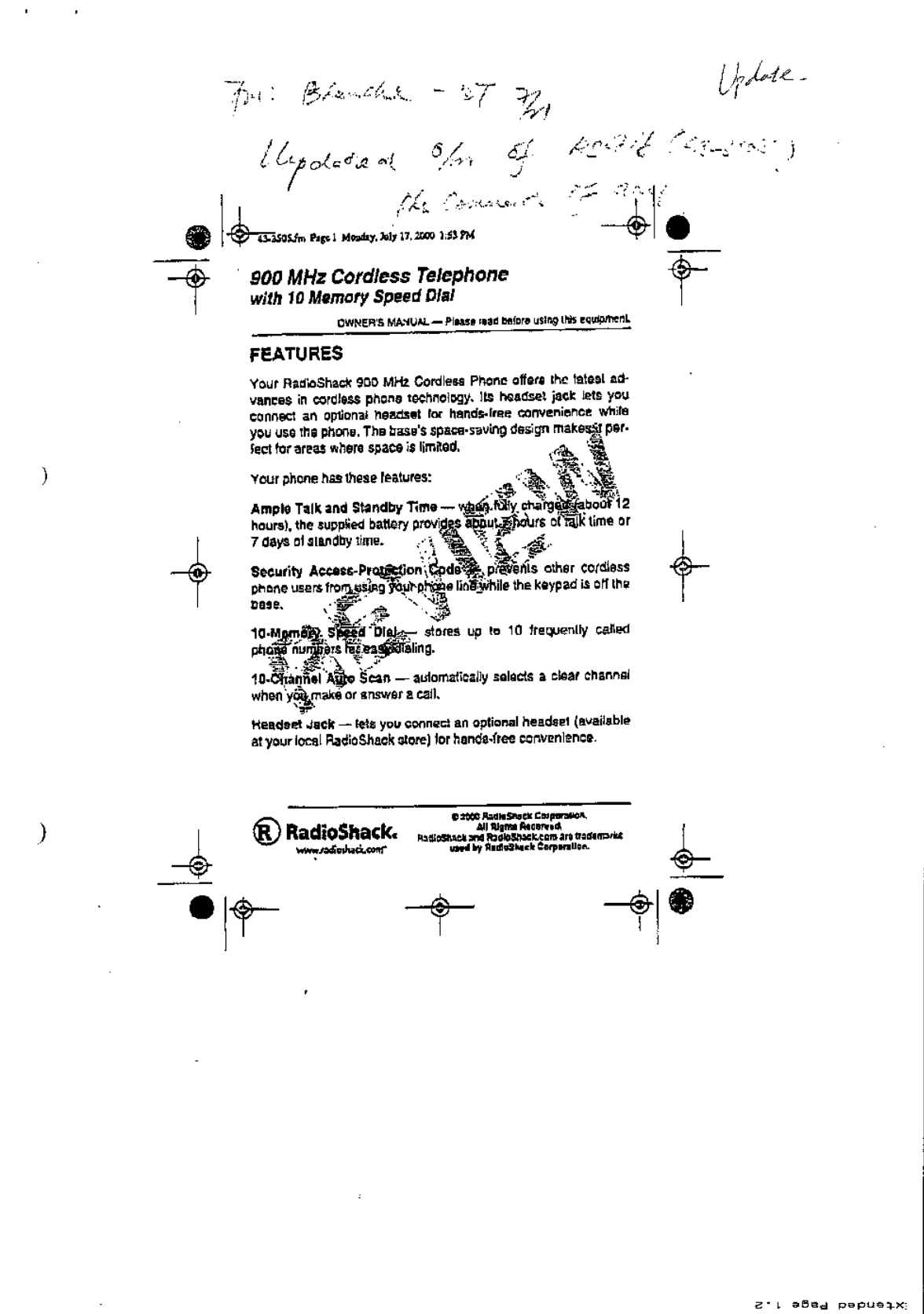 Radio Shack 4303505 900 MHz Cordless Telephone User Manual