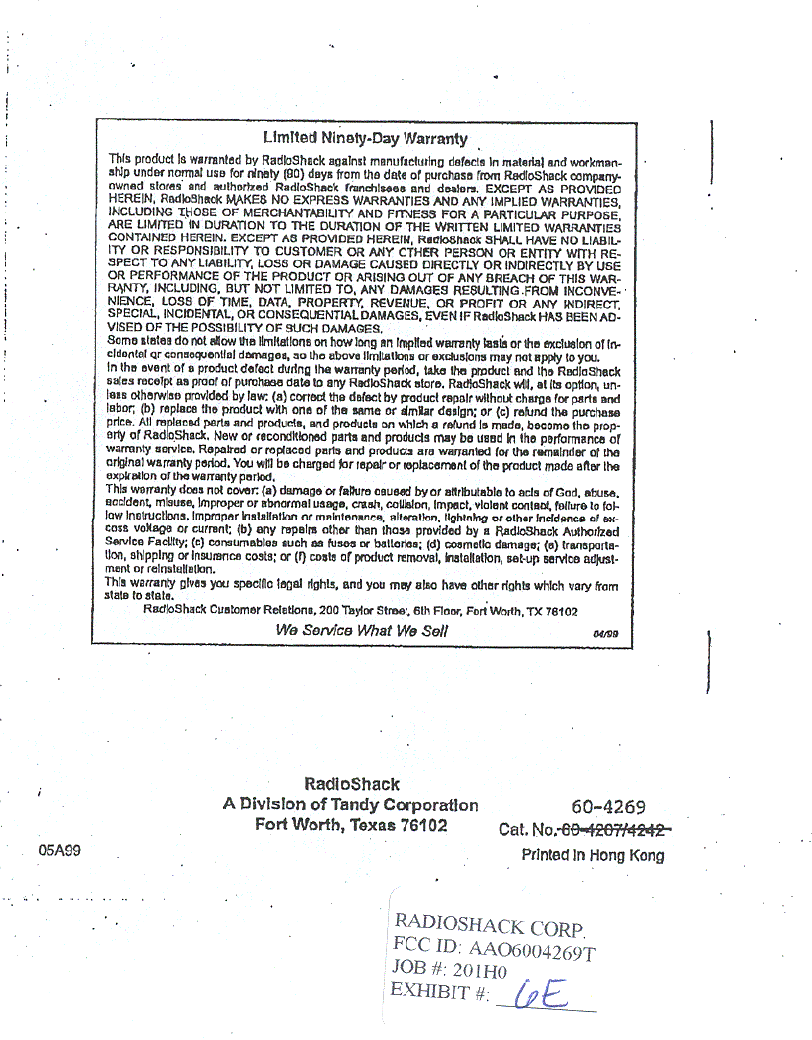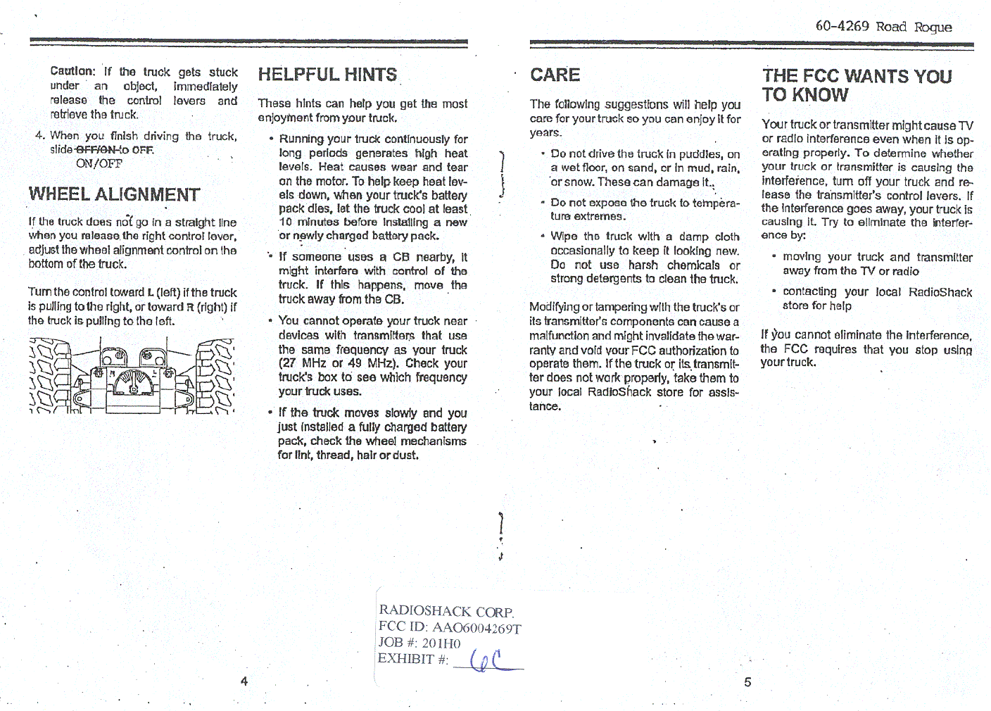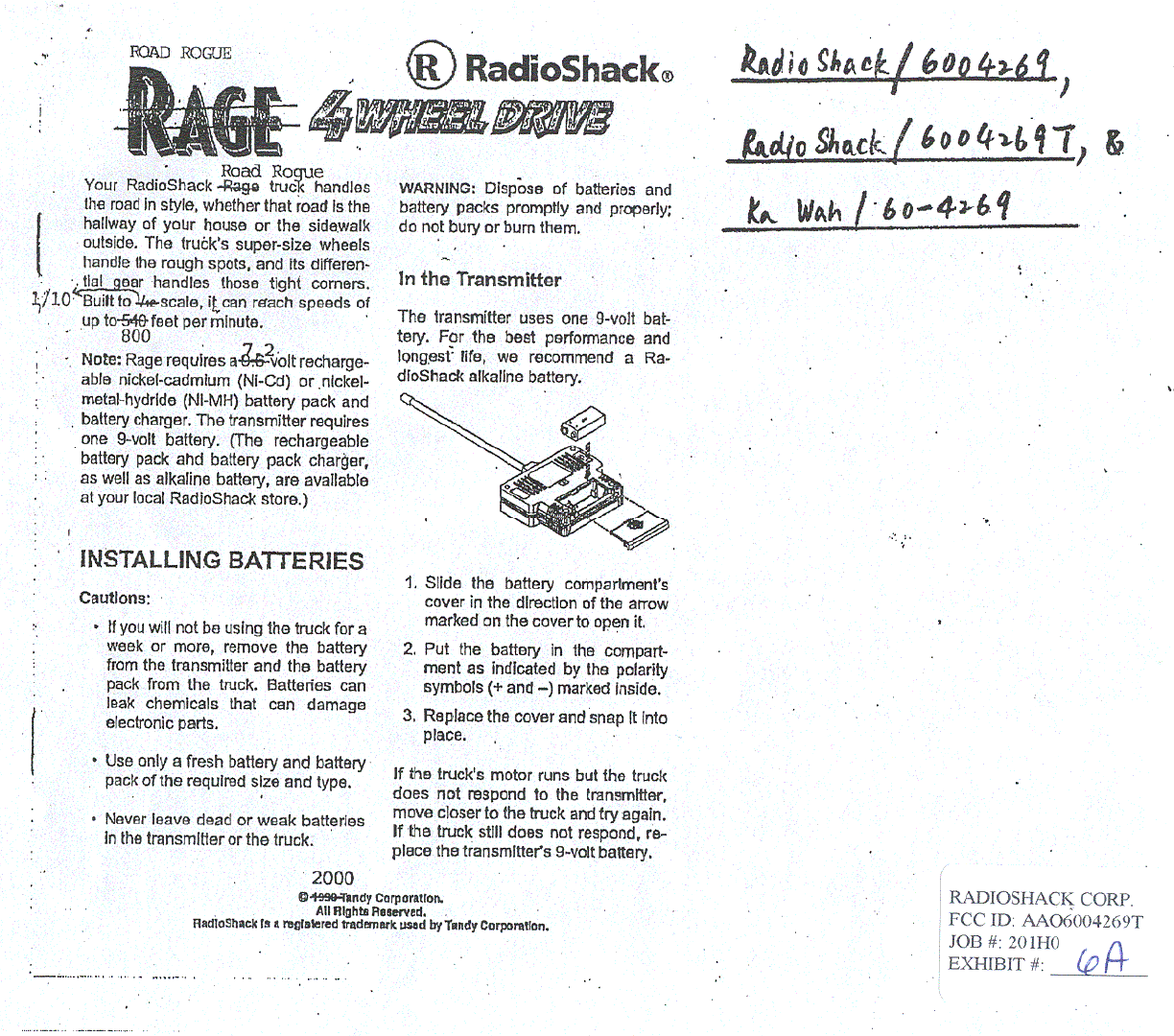 Radio Shack 6004269T Remote Control Transmitter User Manual users manual