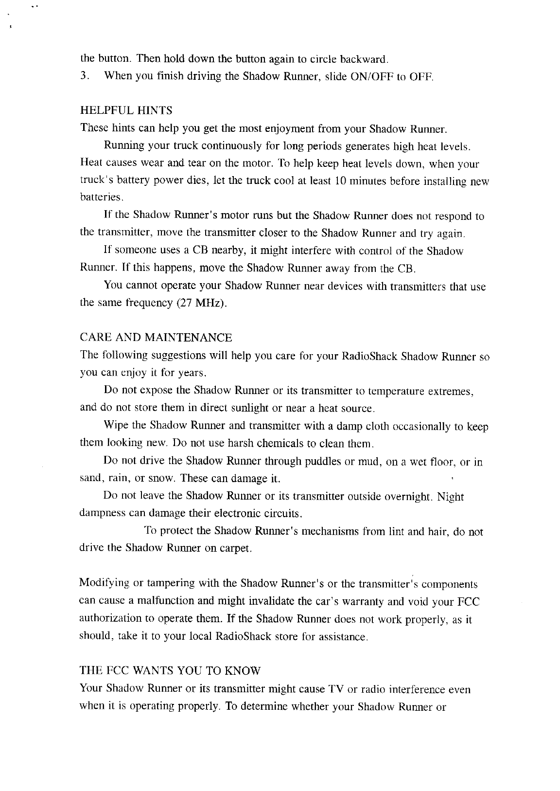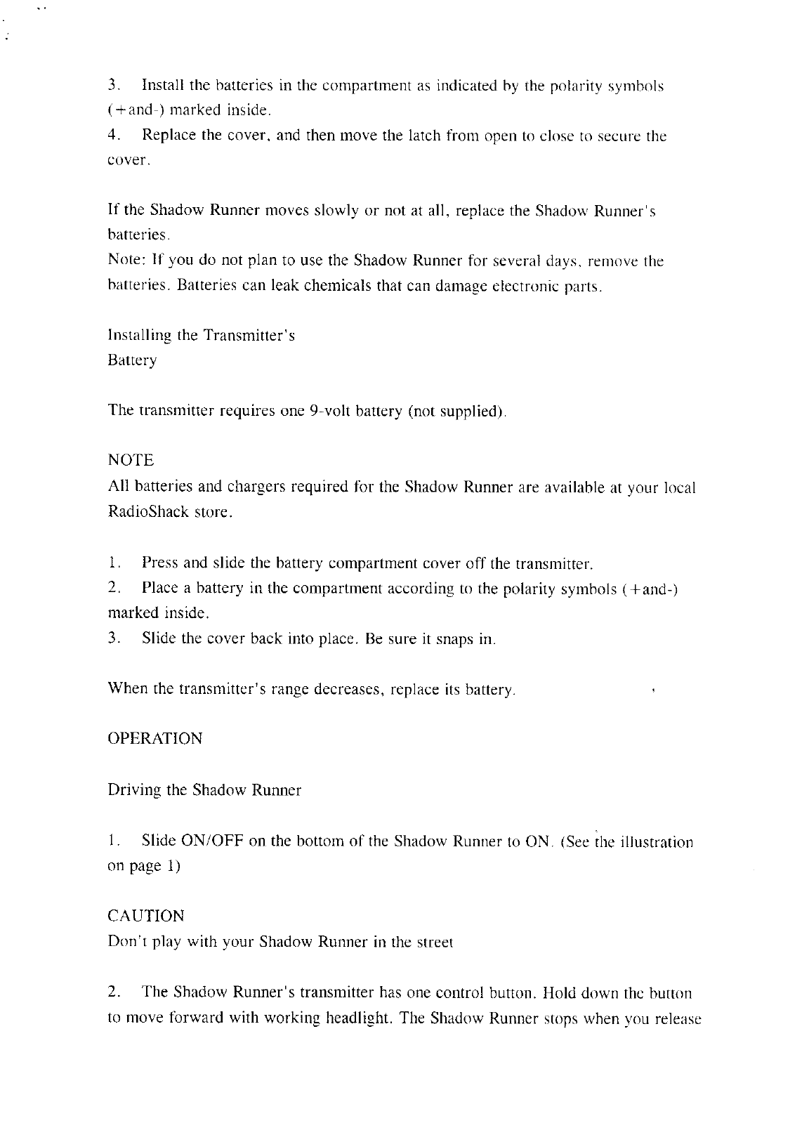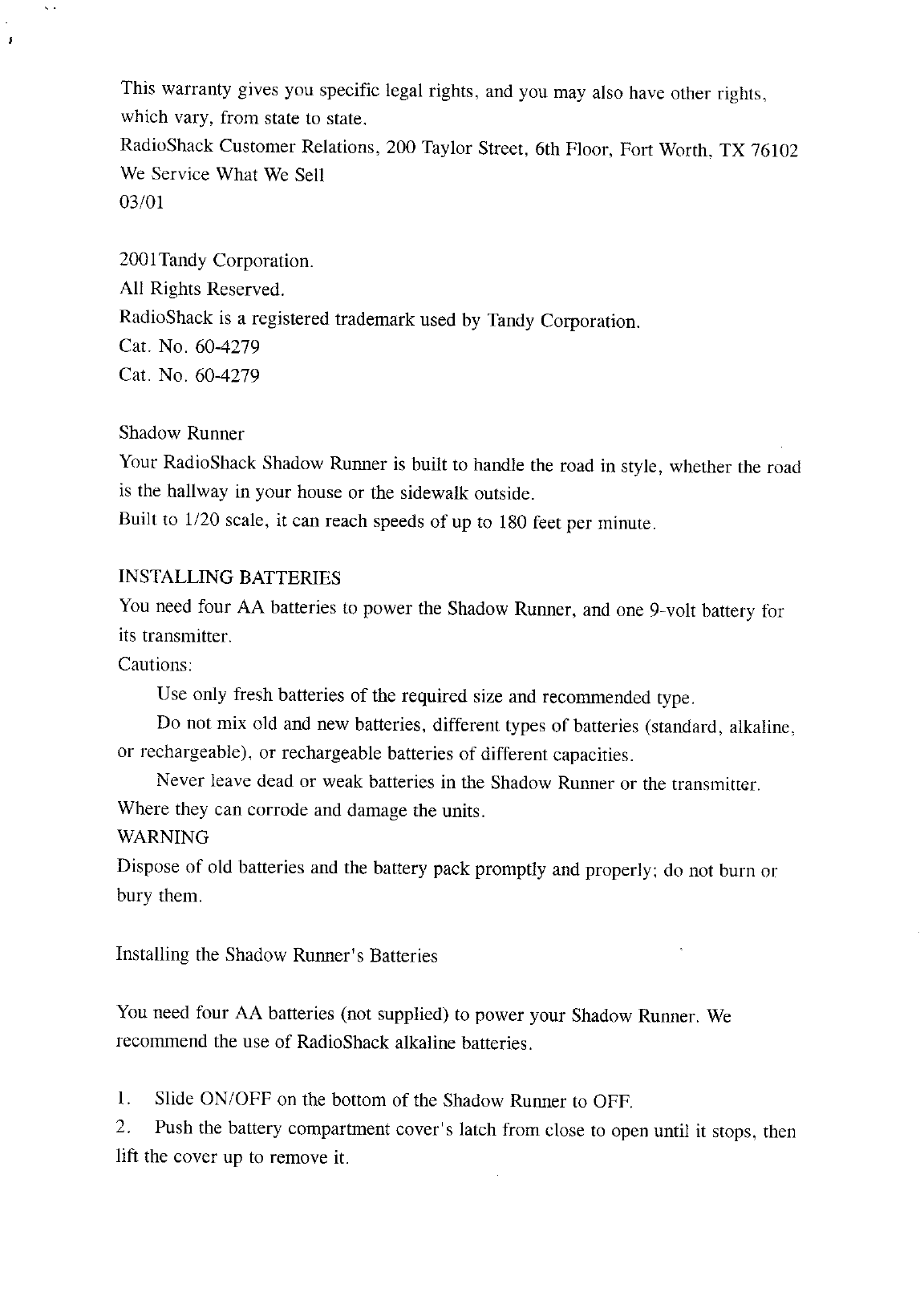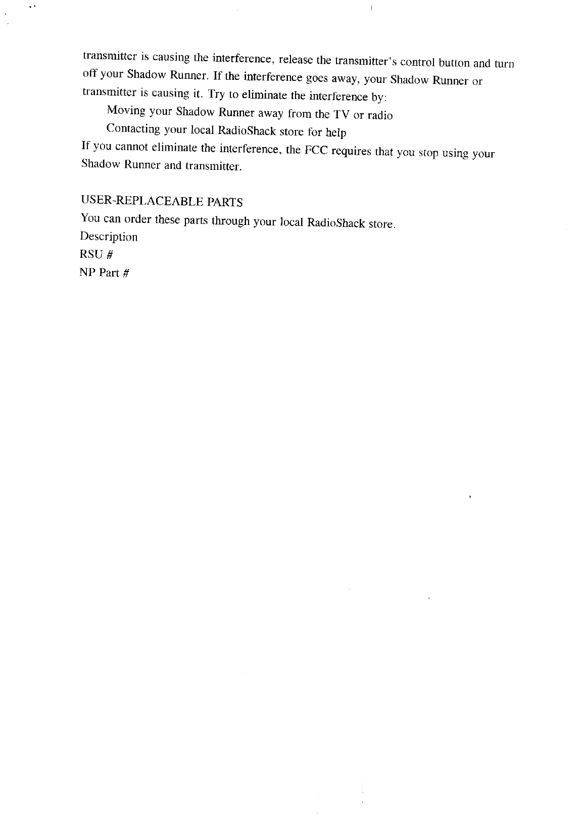Radio Shack 6004279 Shadow Runner User Manual users manual