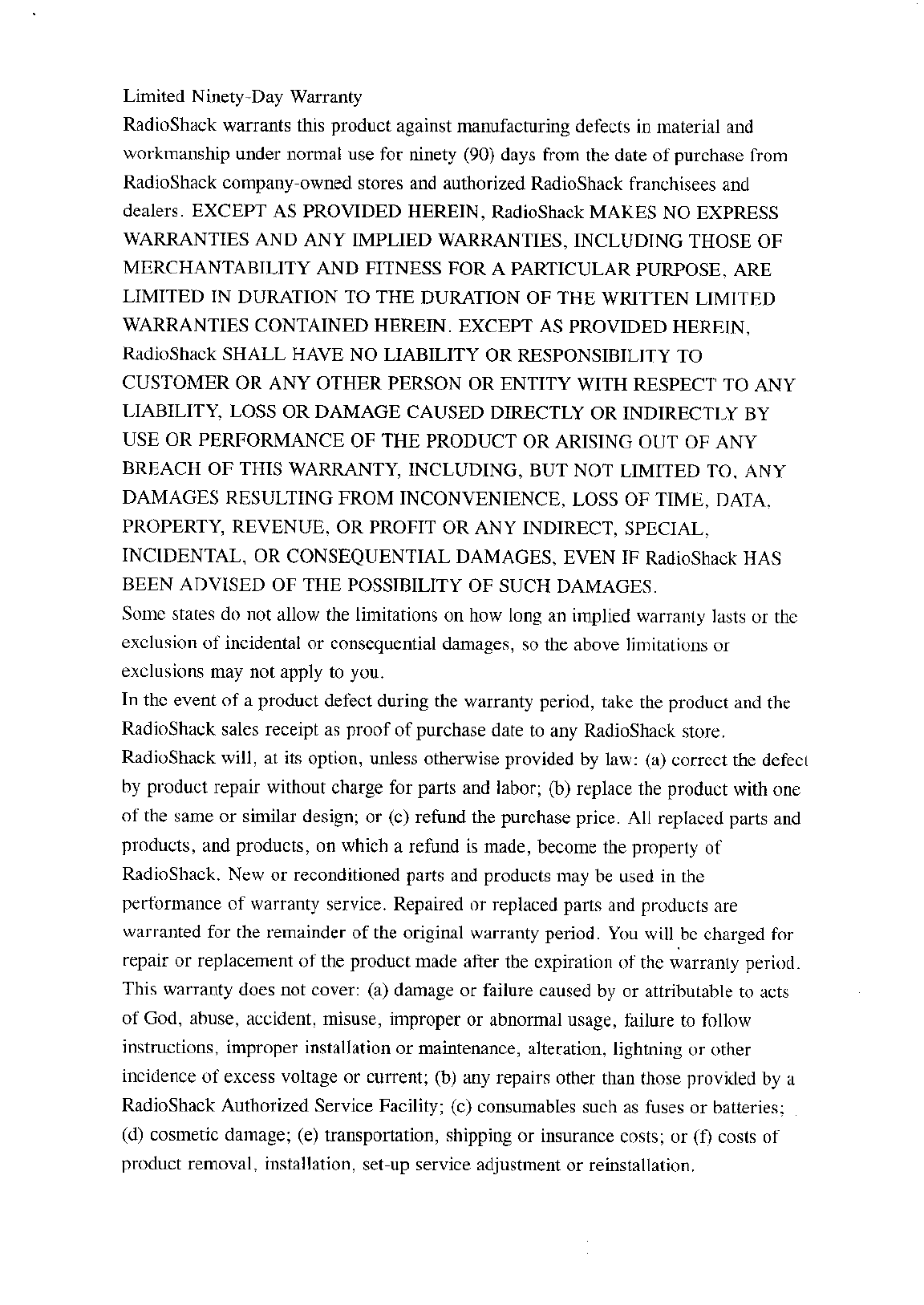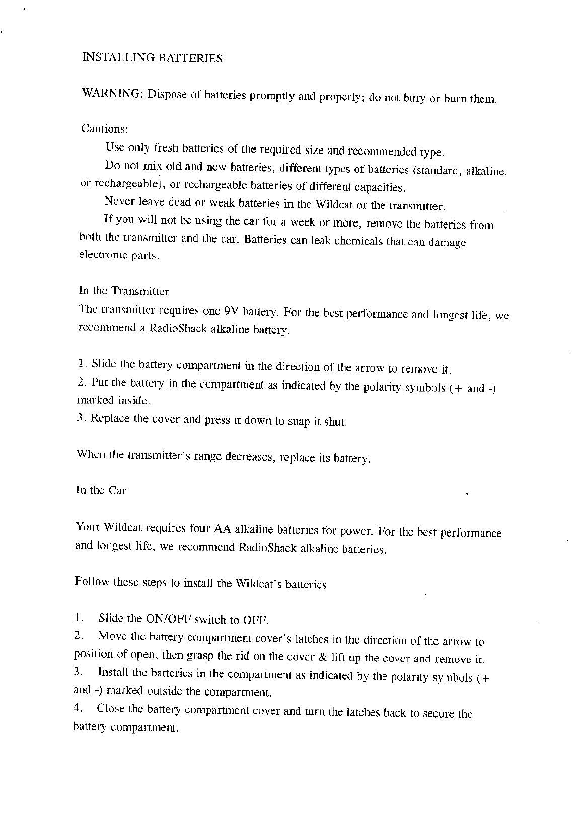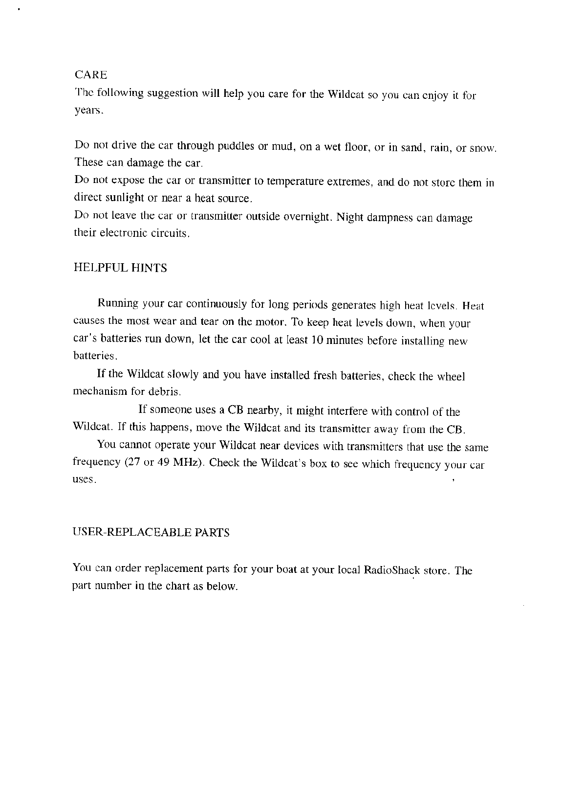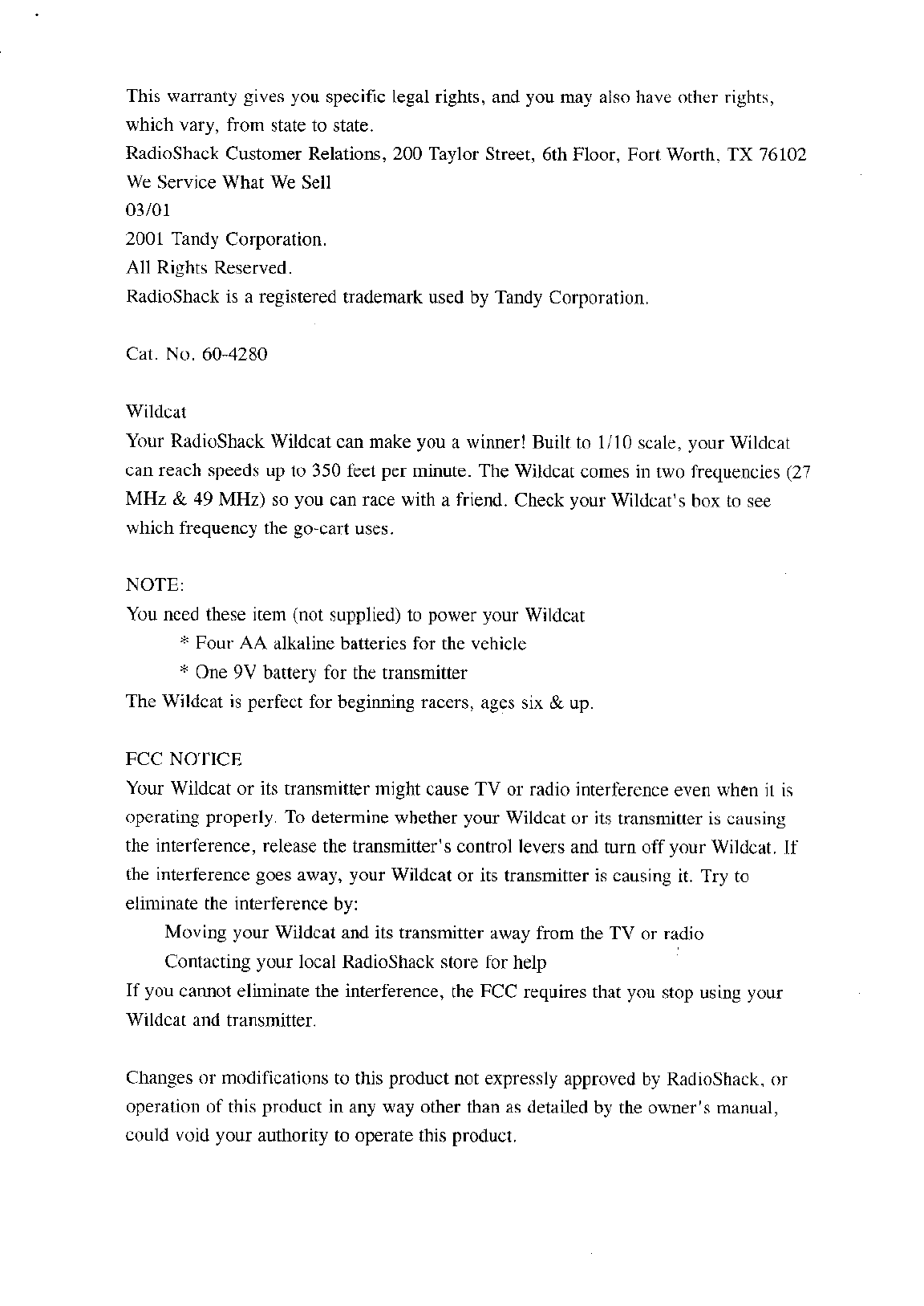 Radio Shack 6004280 Wildcat User Manual users manual