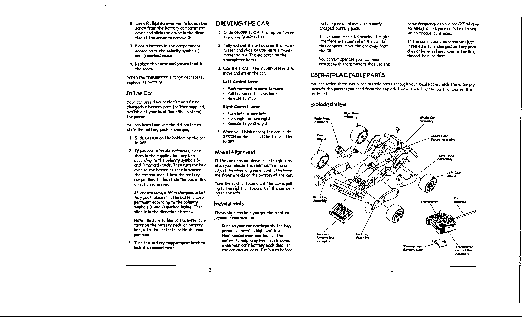 Radio Shack 6004284 Remote control toy User Manual Manual