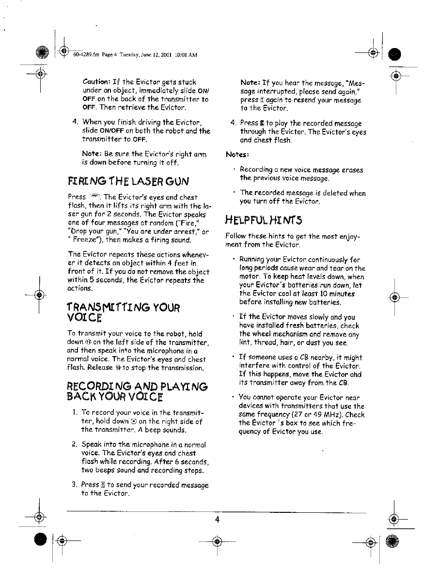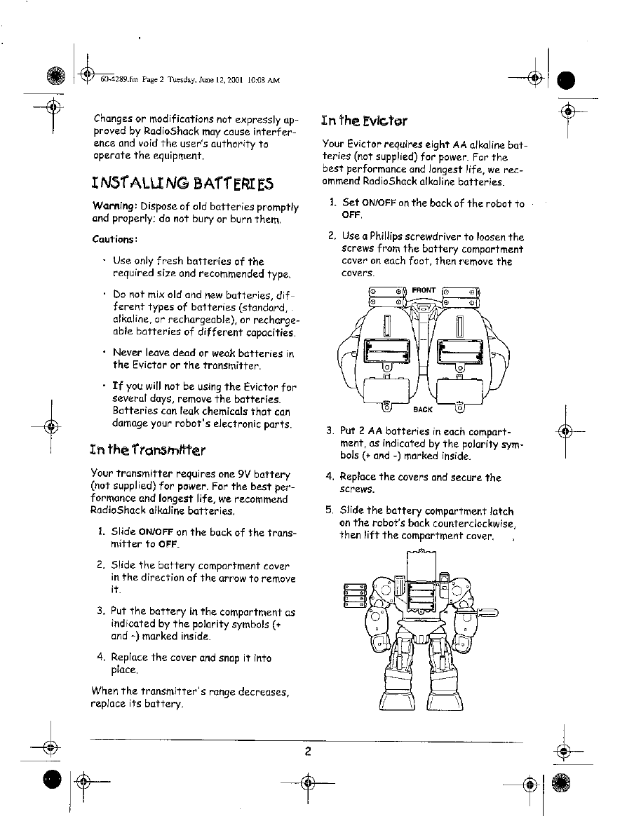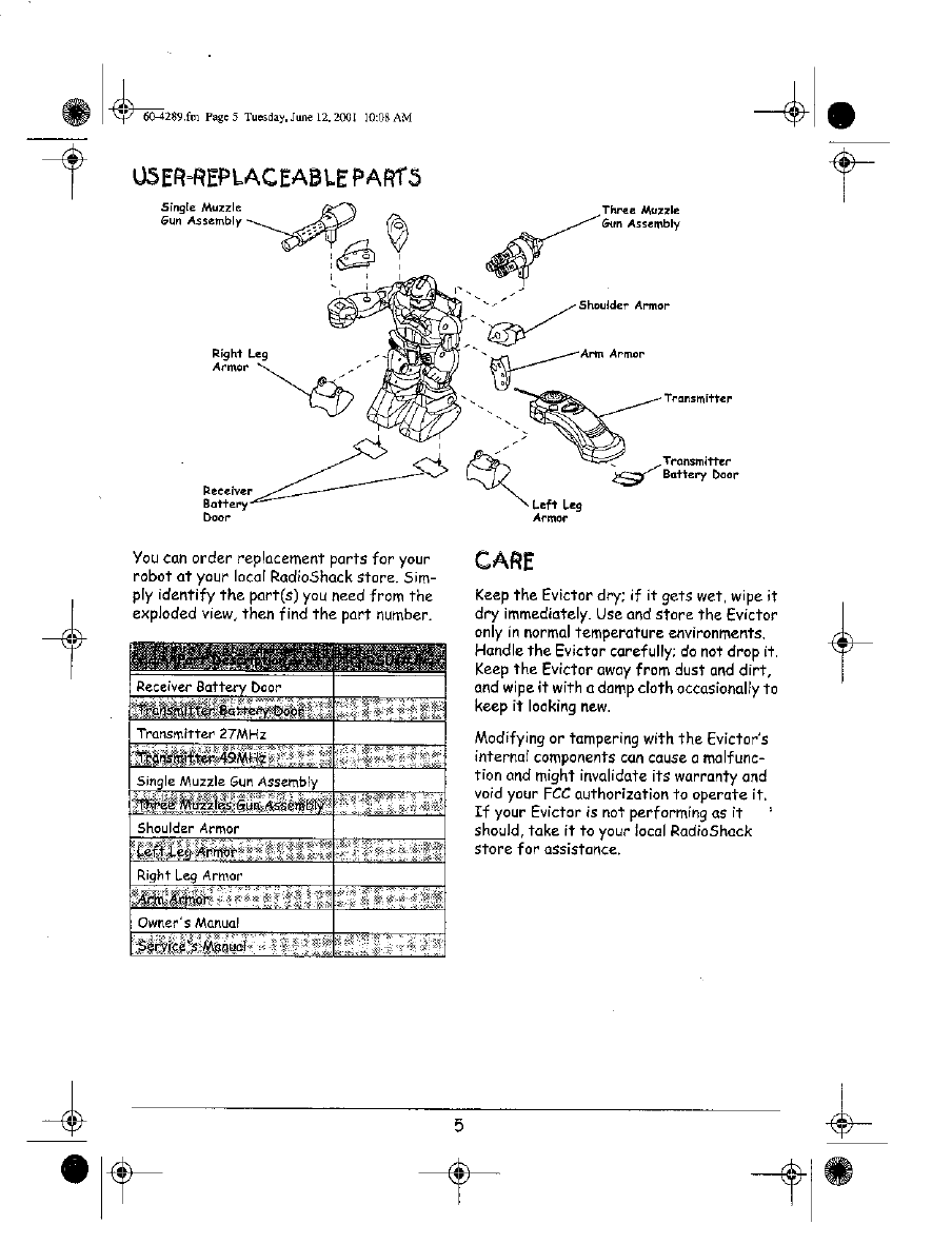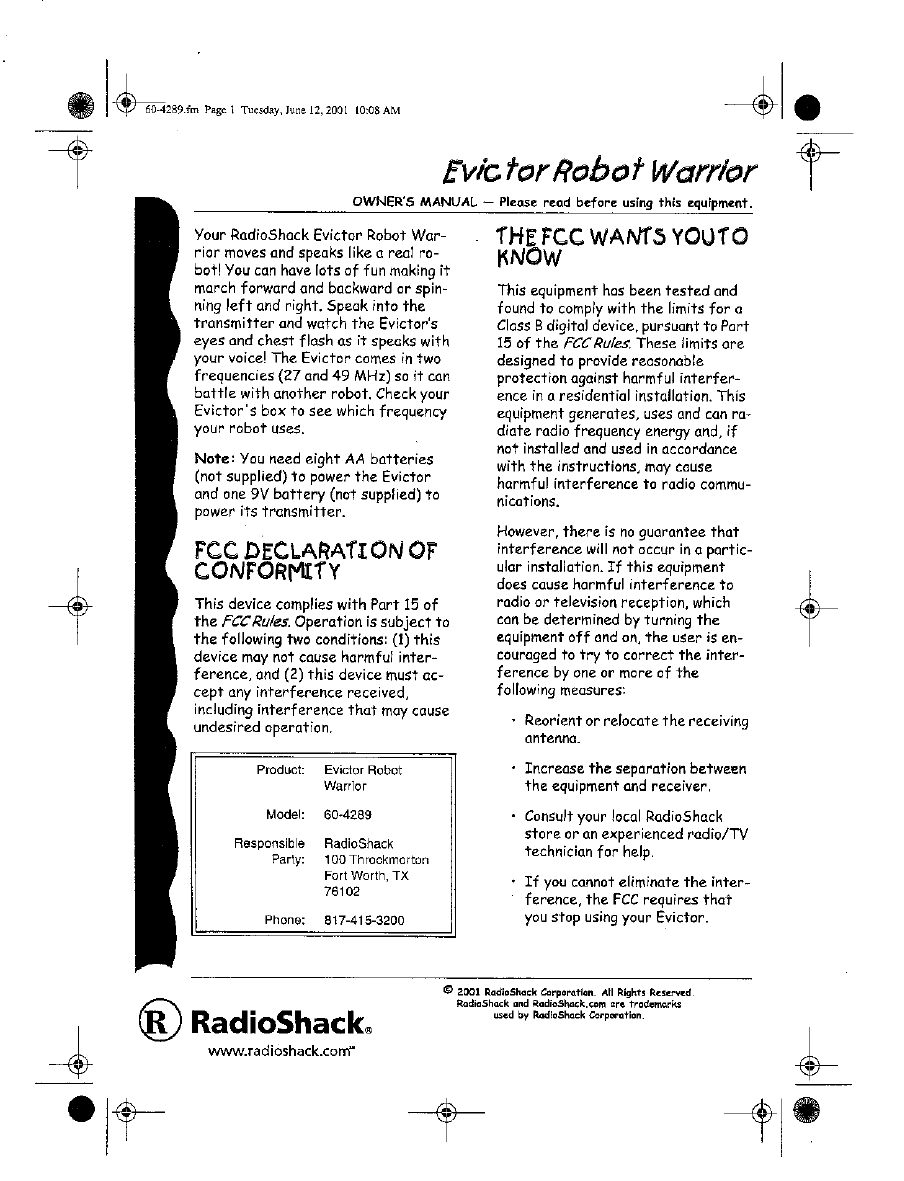 Radio Shack 6004289T Evictor (Robot Warrior) User Manual users manual
