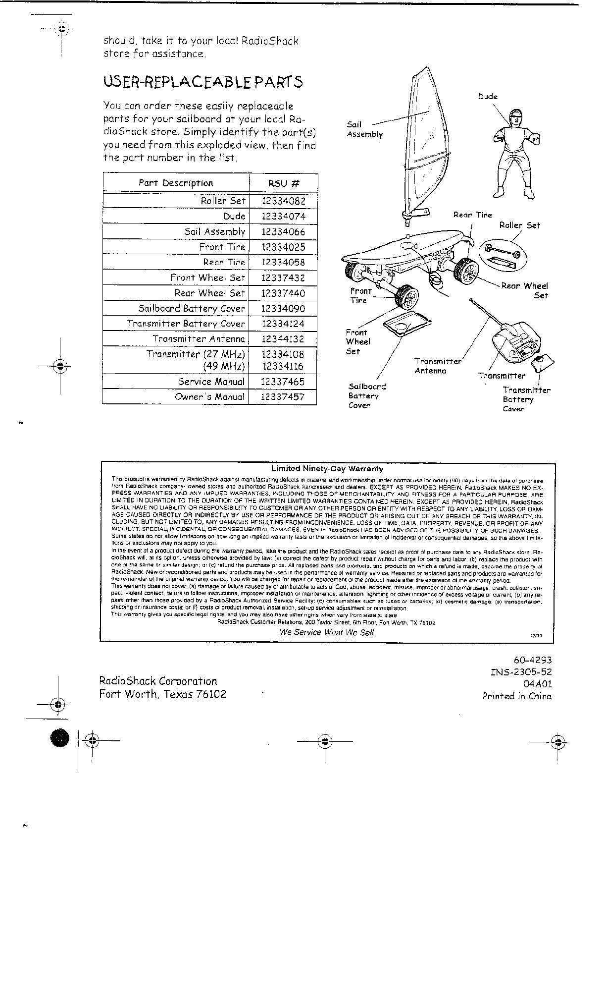 Radio Shack 6004293RX49 Remote Control Toy User Manual Revised Manual
