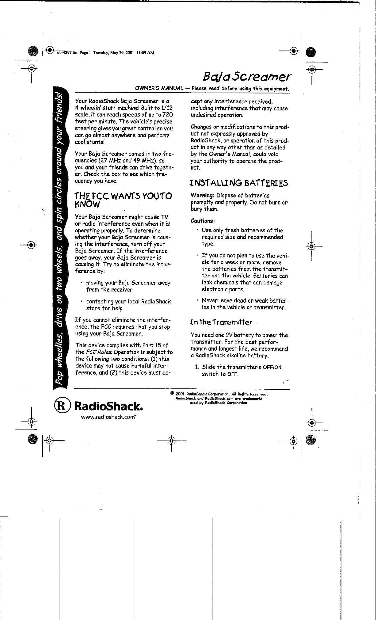 Radio Shack 6004297TX27 Remote controlled toy User Manual