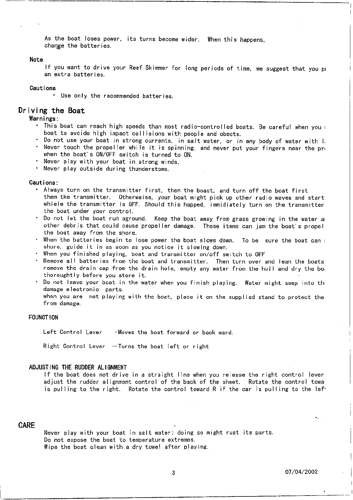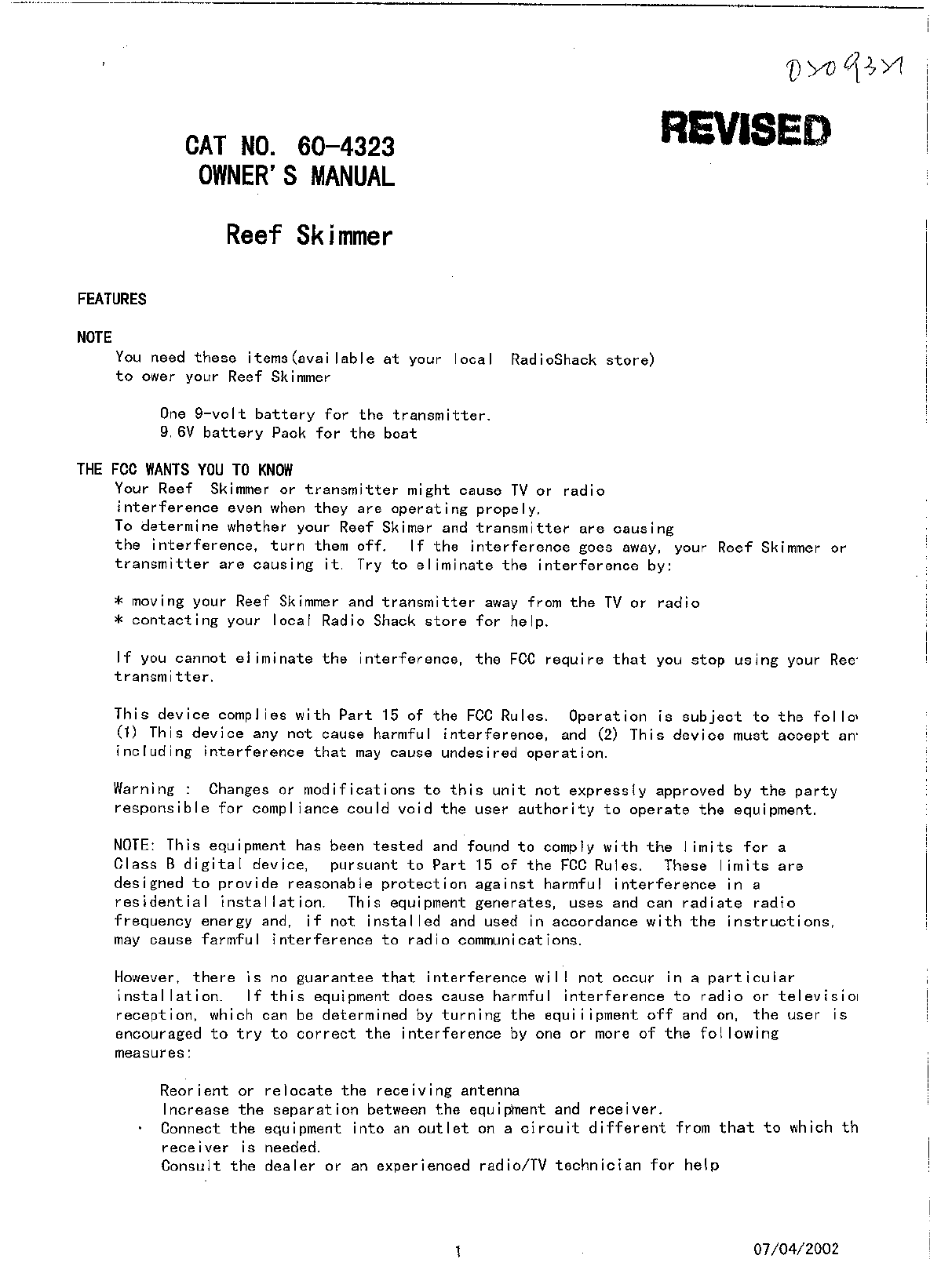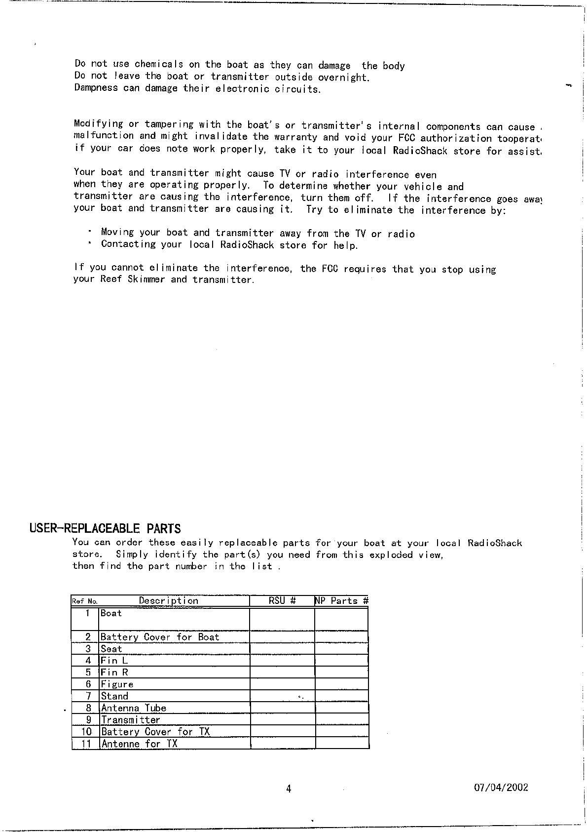 Radio Shack 6004323TX27 RC Boat User Manual