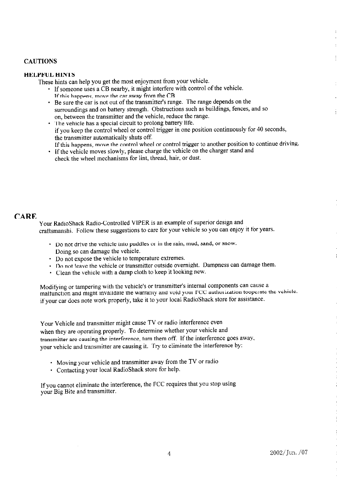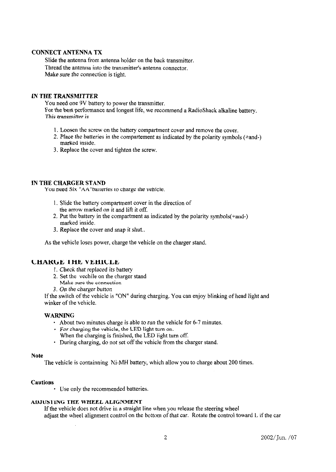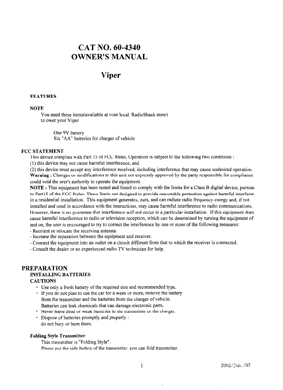 Radio Shack 6004340 Remote Control Toy Transmitter User Manual 115