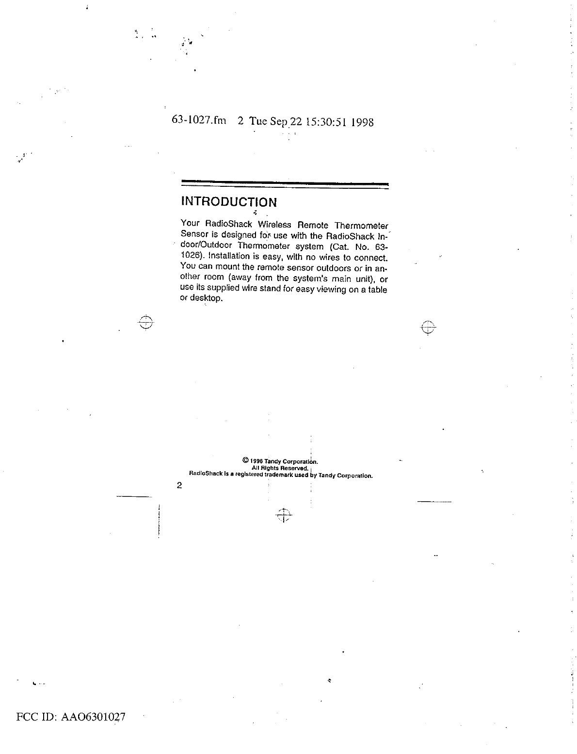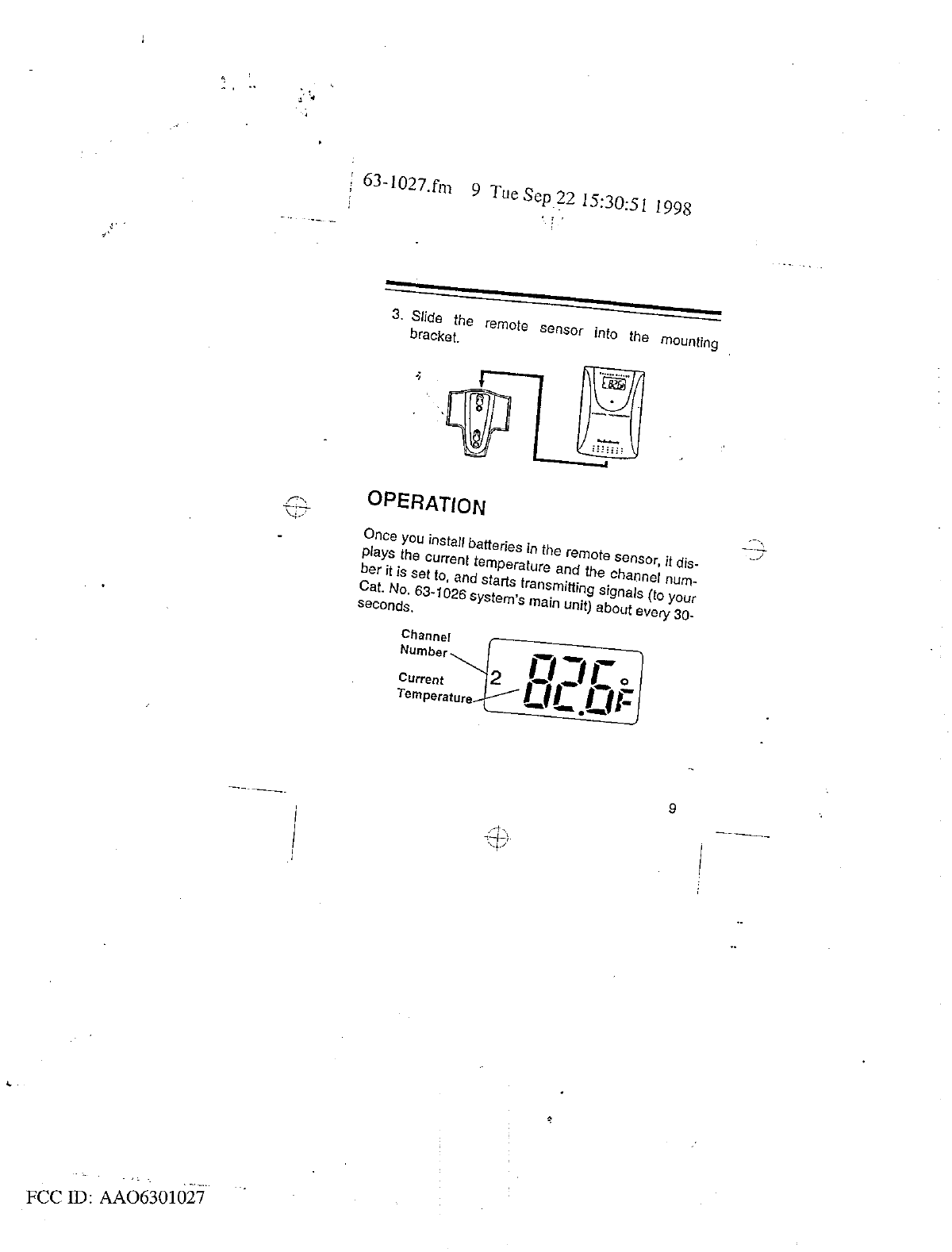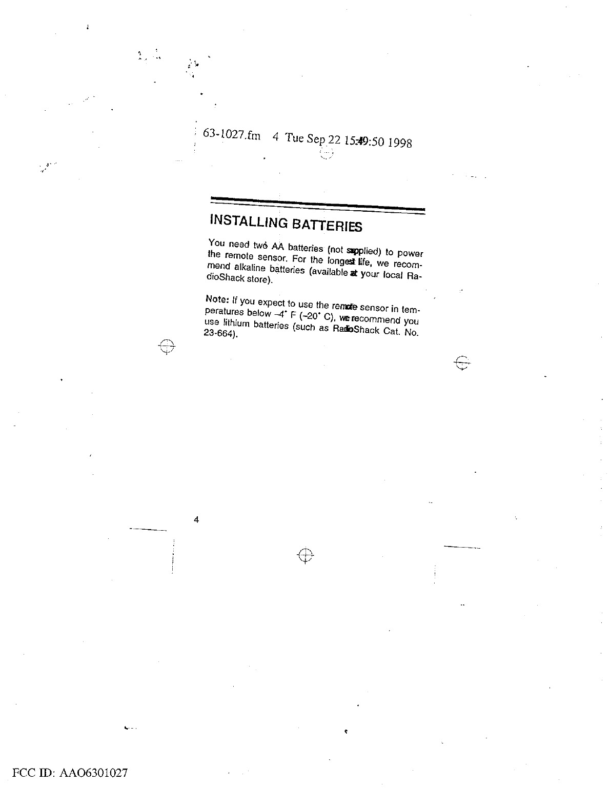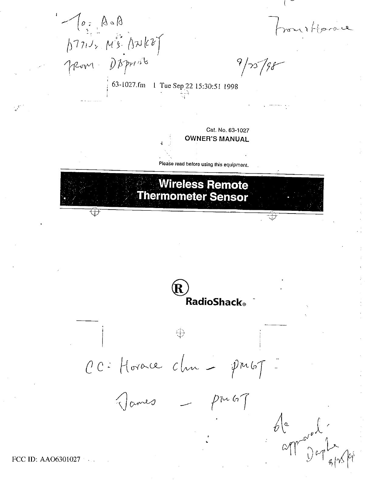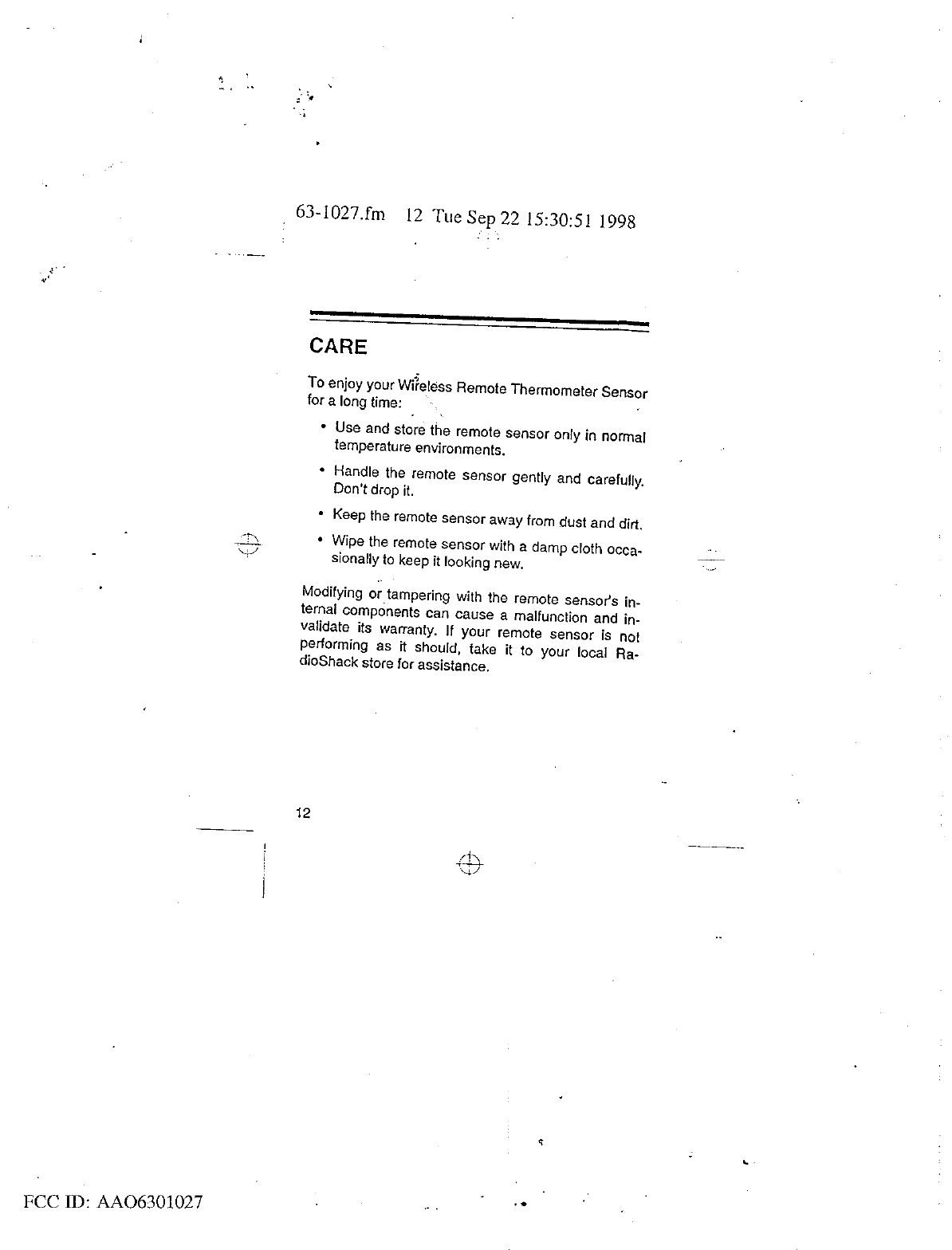 Radio Shack 6301027 WIRELESS REMOTE THERMOMETER SENSOR User Manual