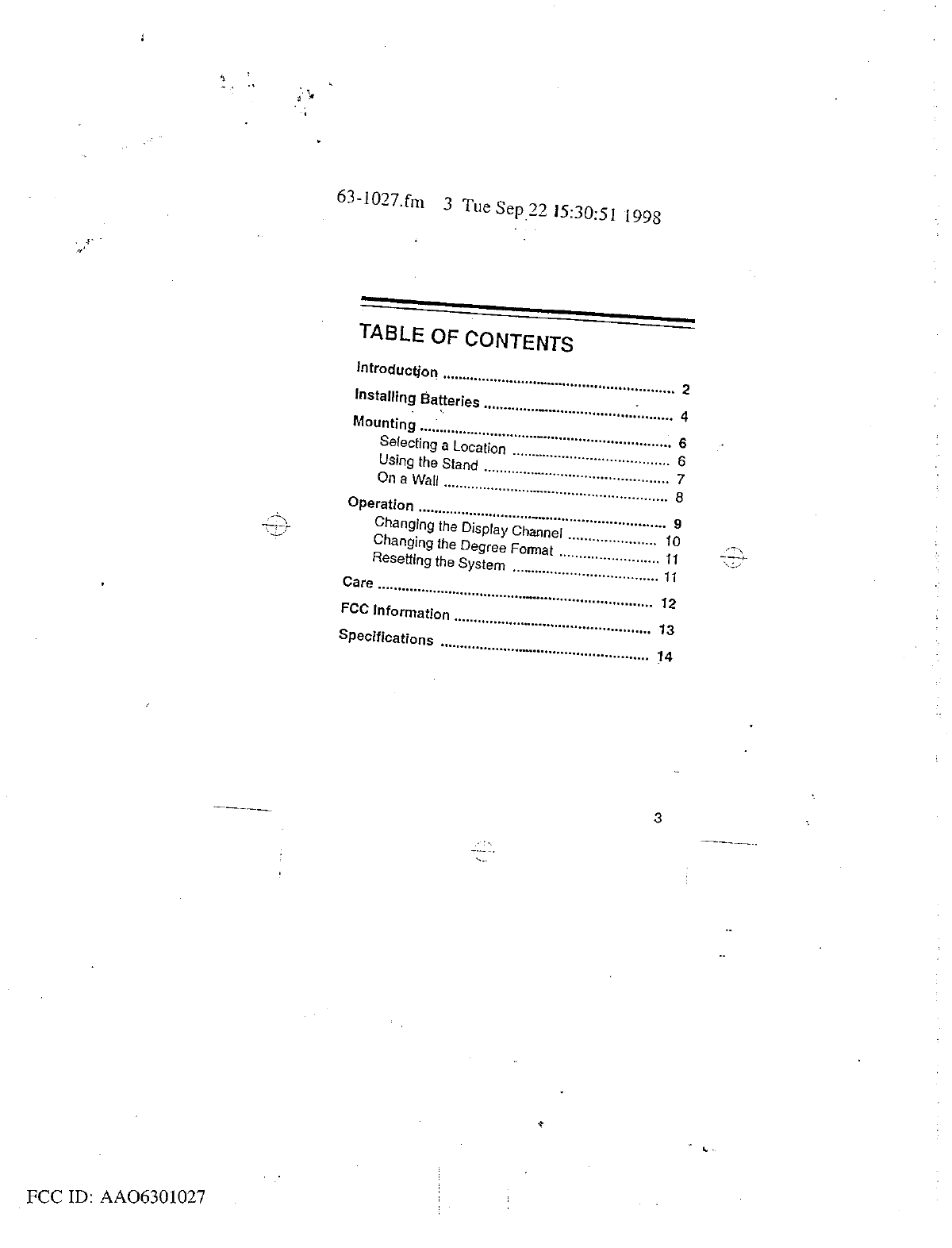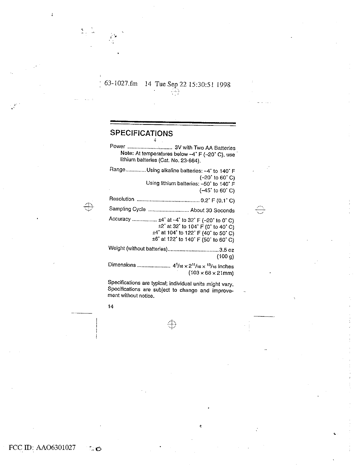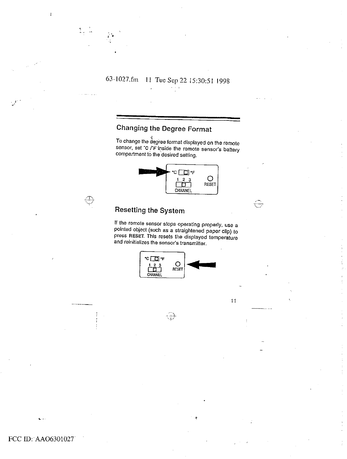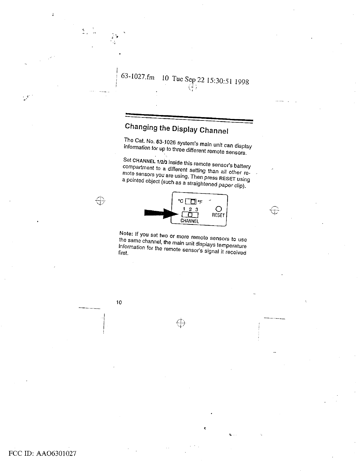 Radio Shack 6301027 WIRELESS REMOTE THERMOMETER SENSOR User Manual