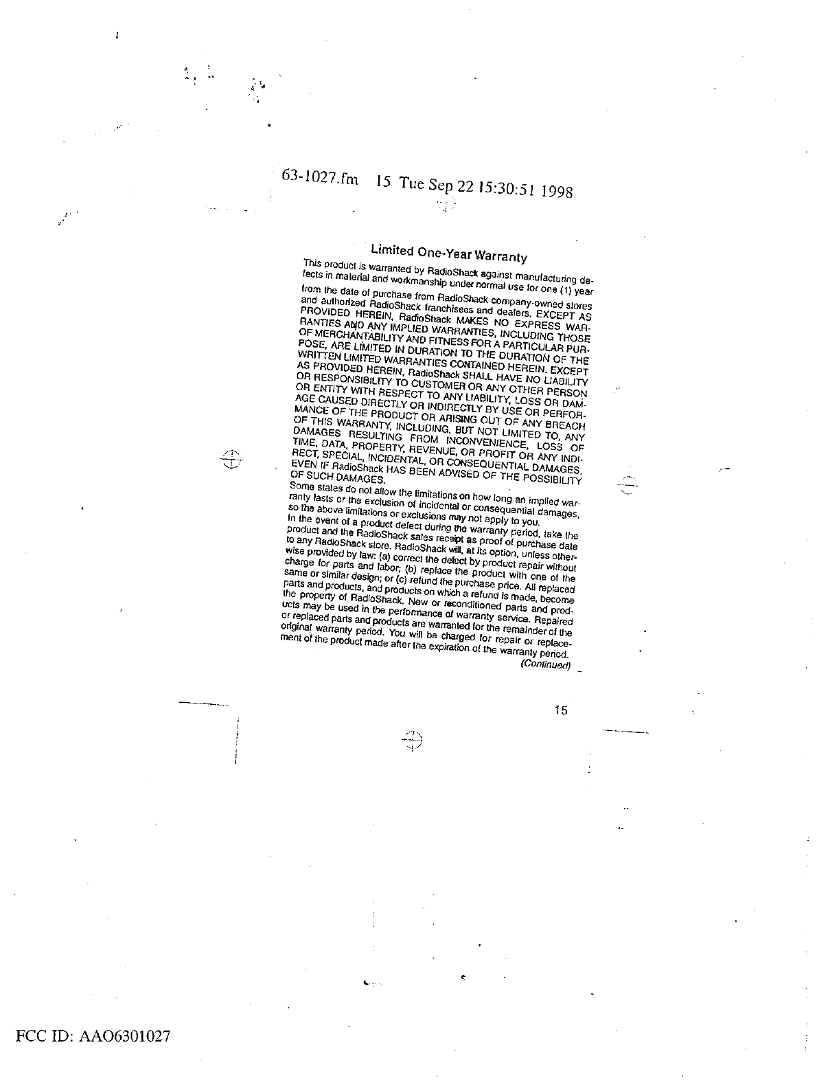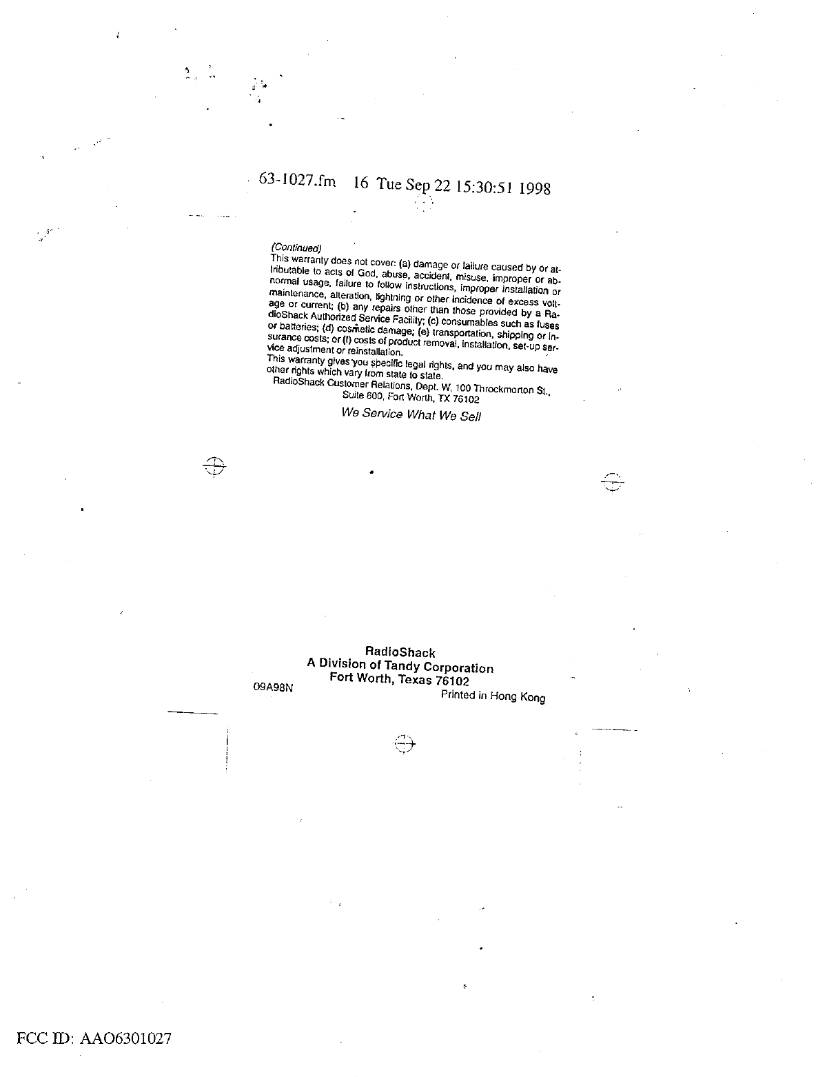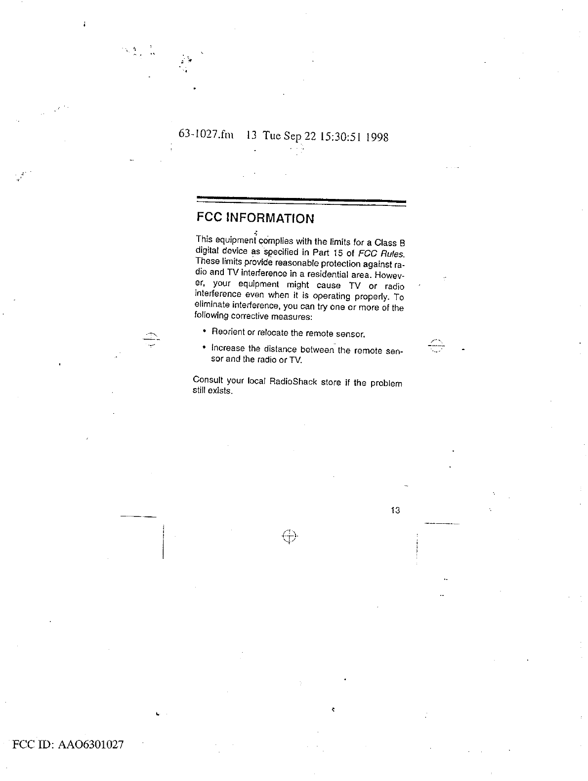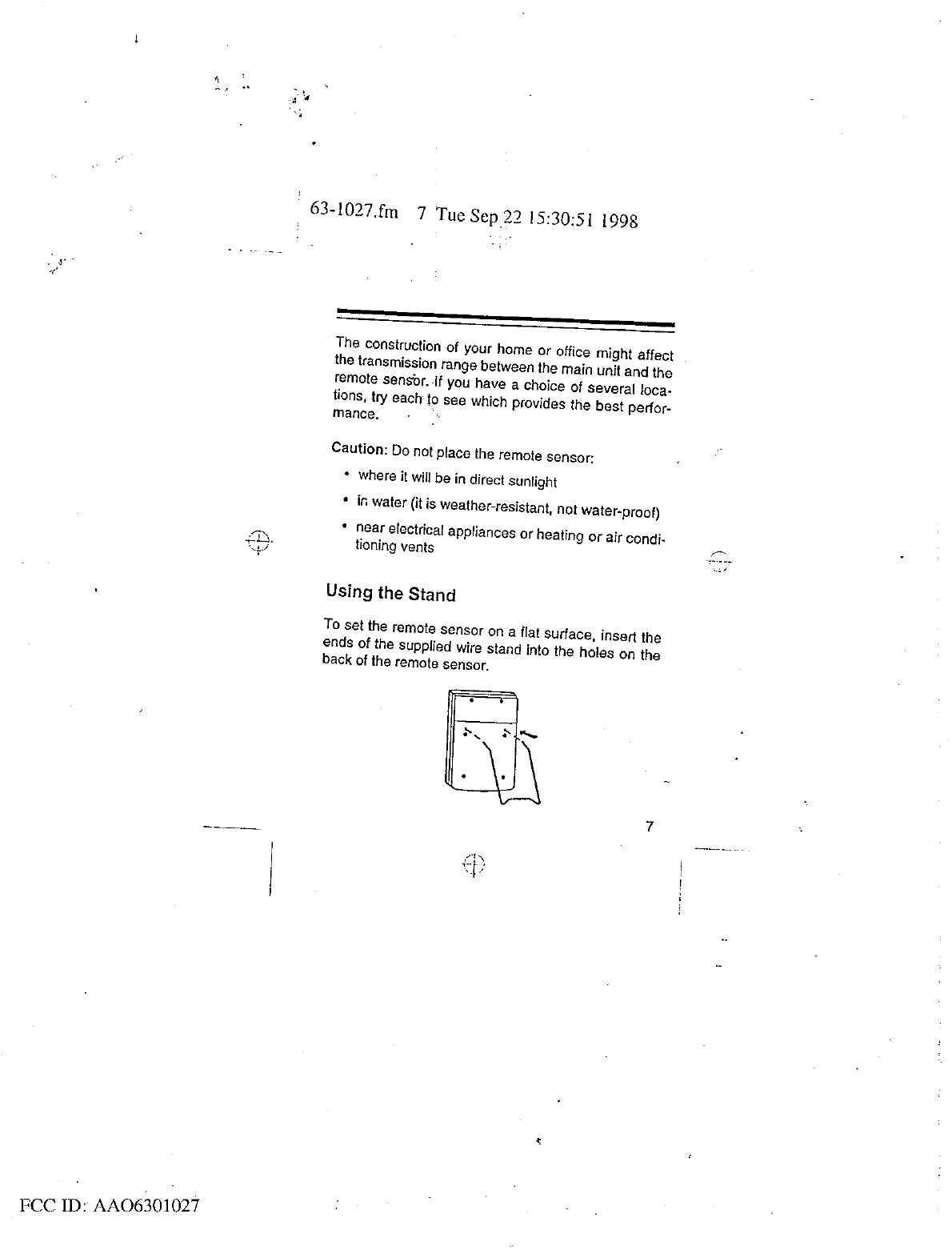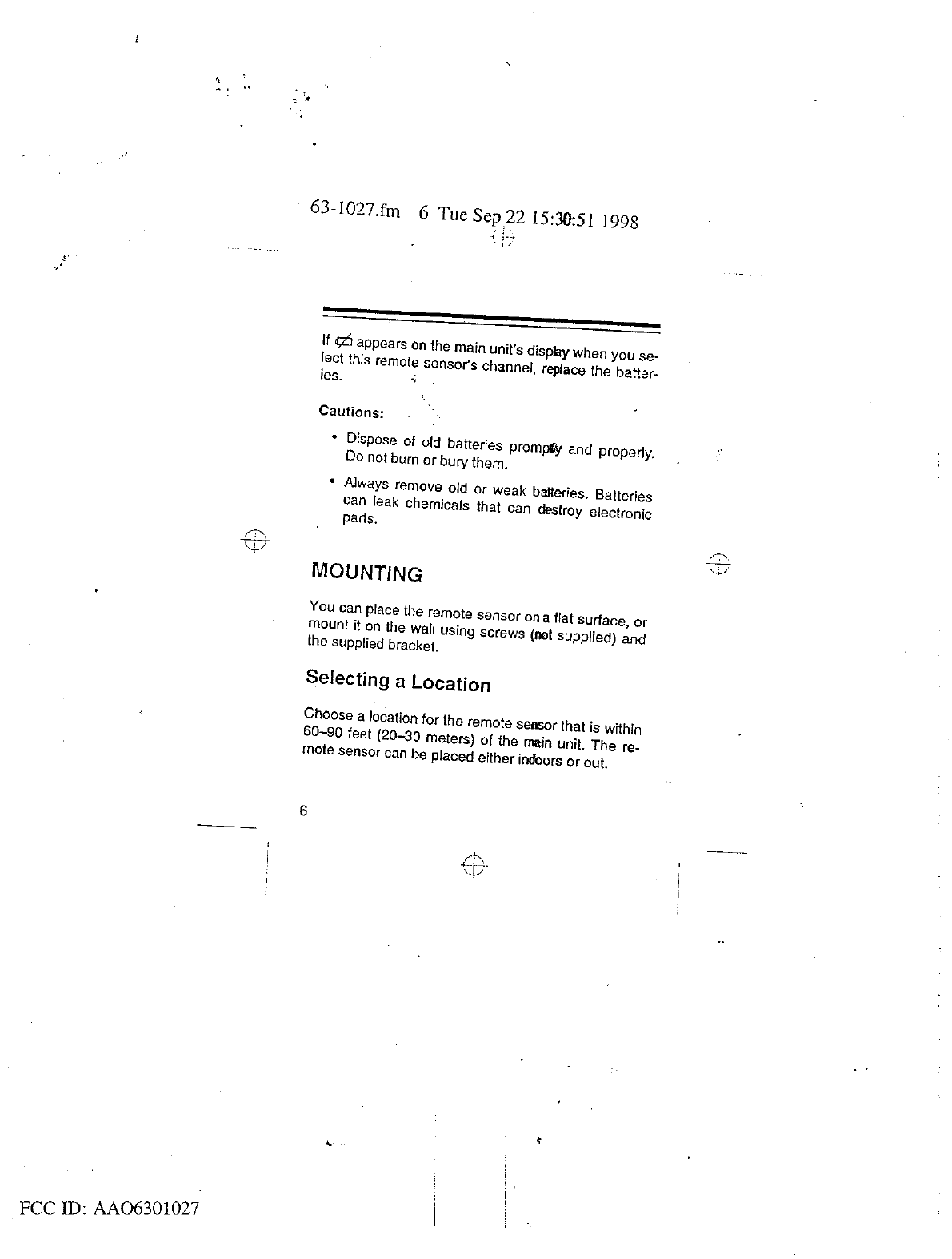 Radio Shack 6301027 WIRELESS REMOTE THERMOMETER SENSOR User Manual