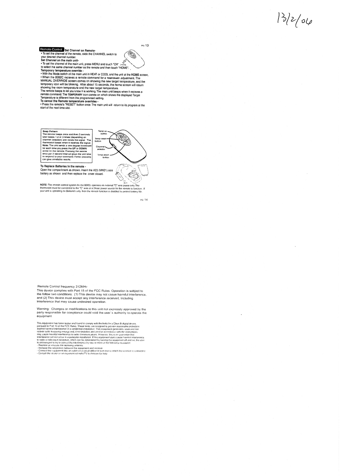 Radio Thermostat of America 8082TX Thermostat Transmitter User Manual
