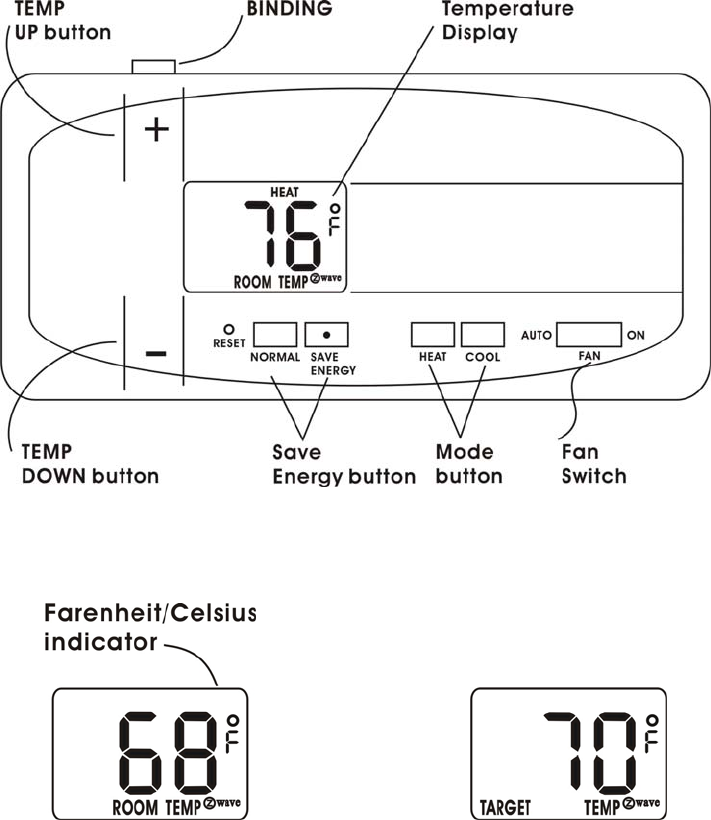 temperature. The defaults for heat targets are: NORMAL 70F, SAVE ENERGY 65F.
