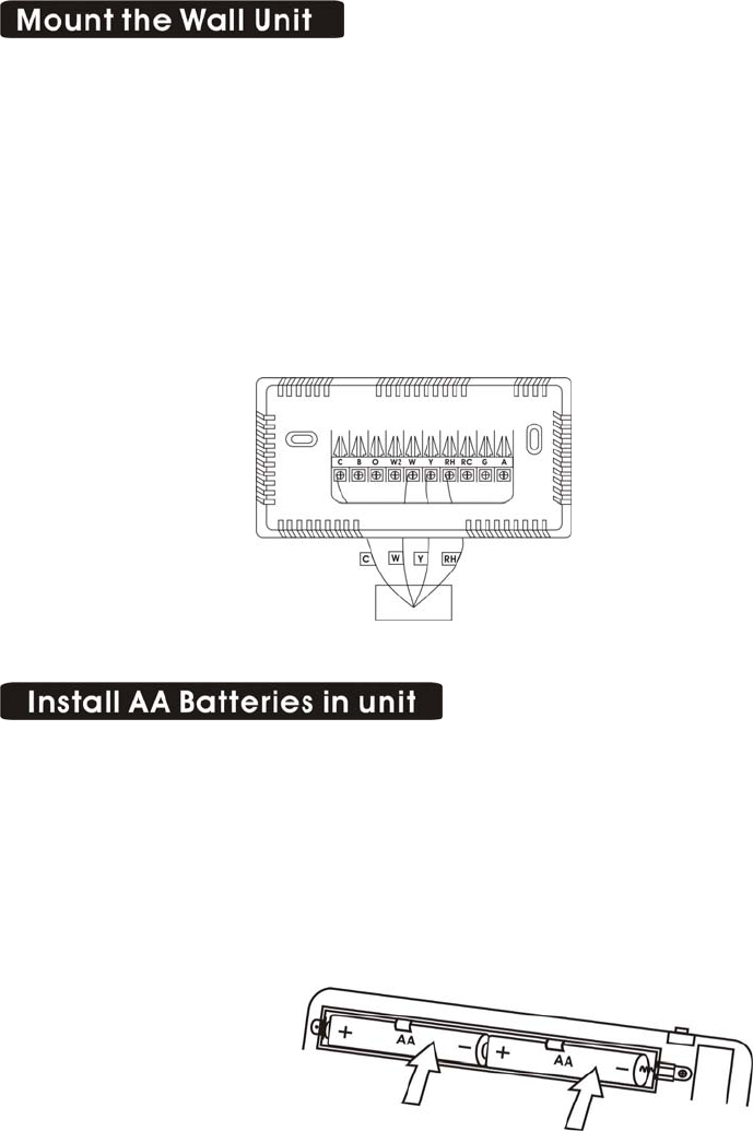 Hold the Wall Unit against the wall, with the wires coming over the top above terminal block.