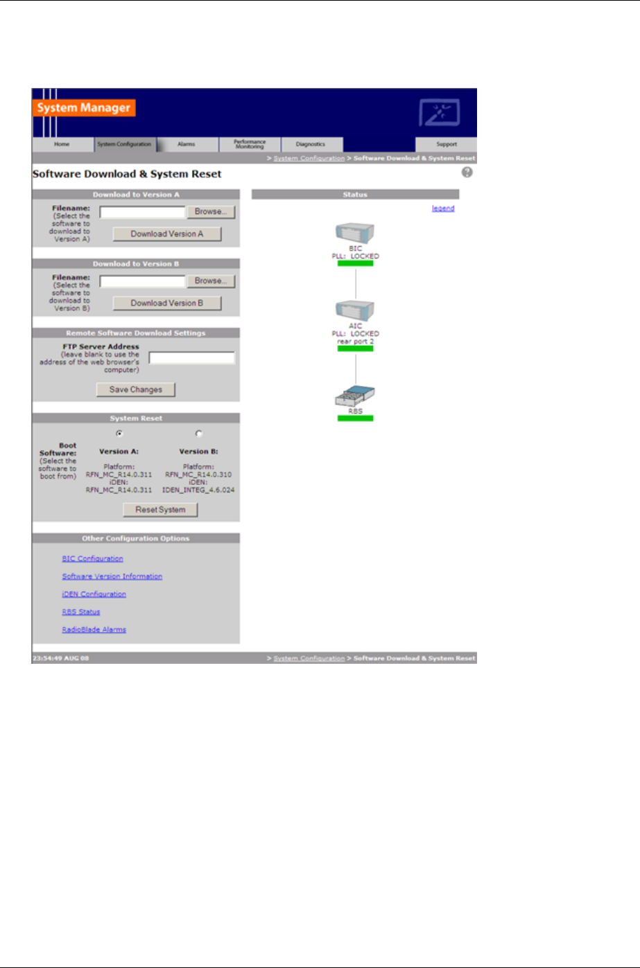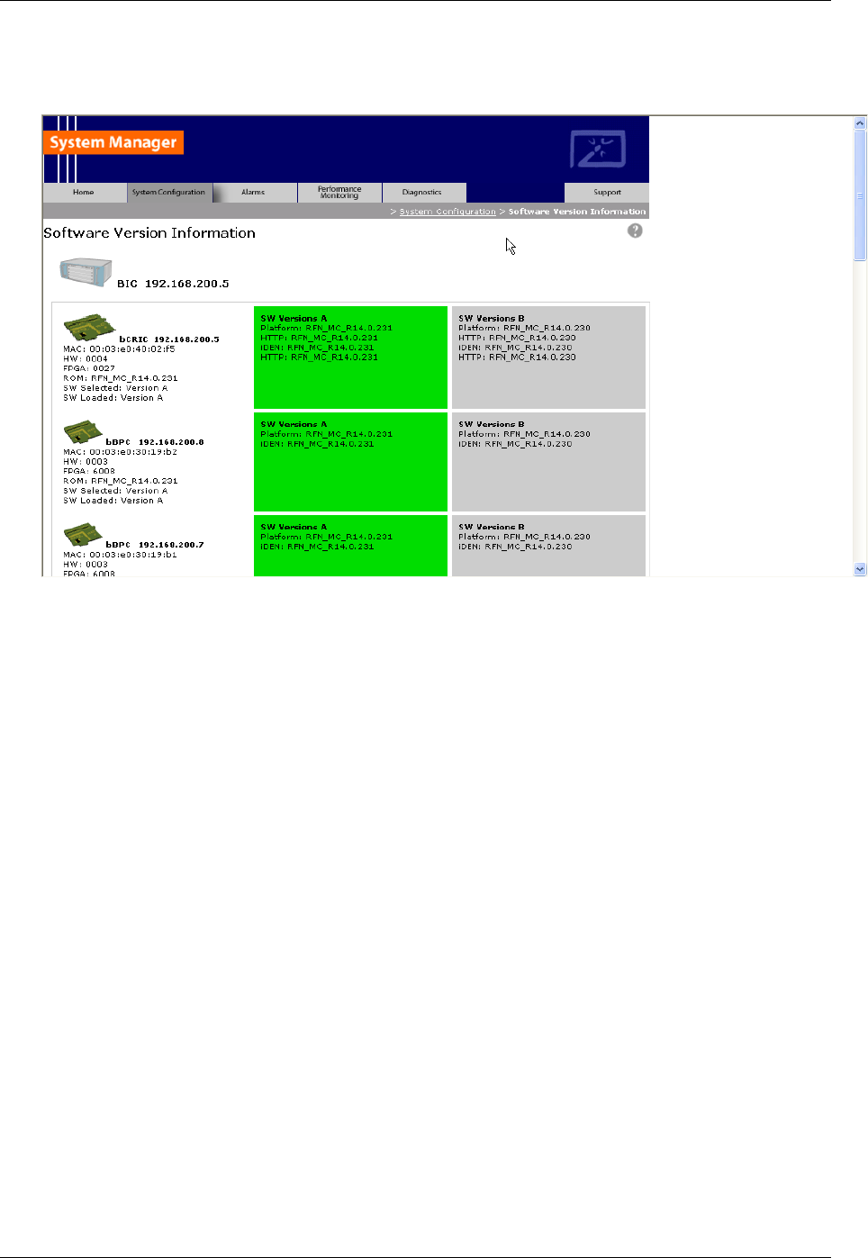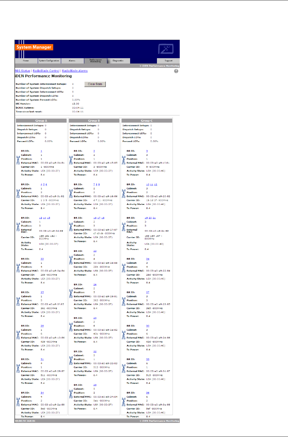 2 Display the RBS Status page, and verify that all RadioBlade transceiver status