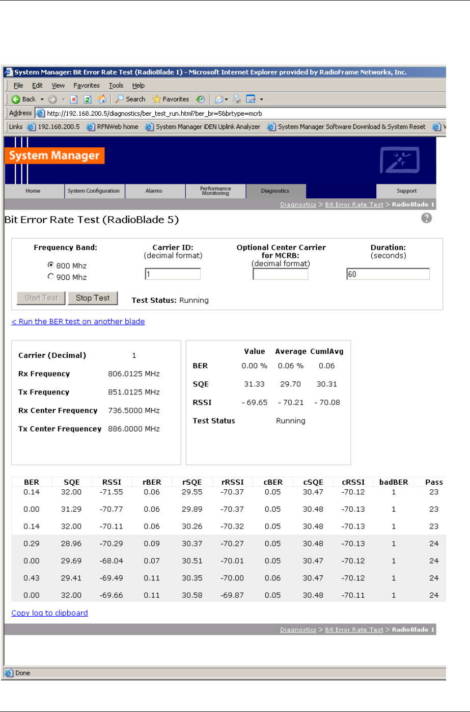 11 When the BER test is complete, lock the RadioBlade transceiver that was under