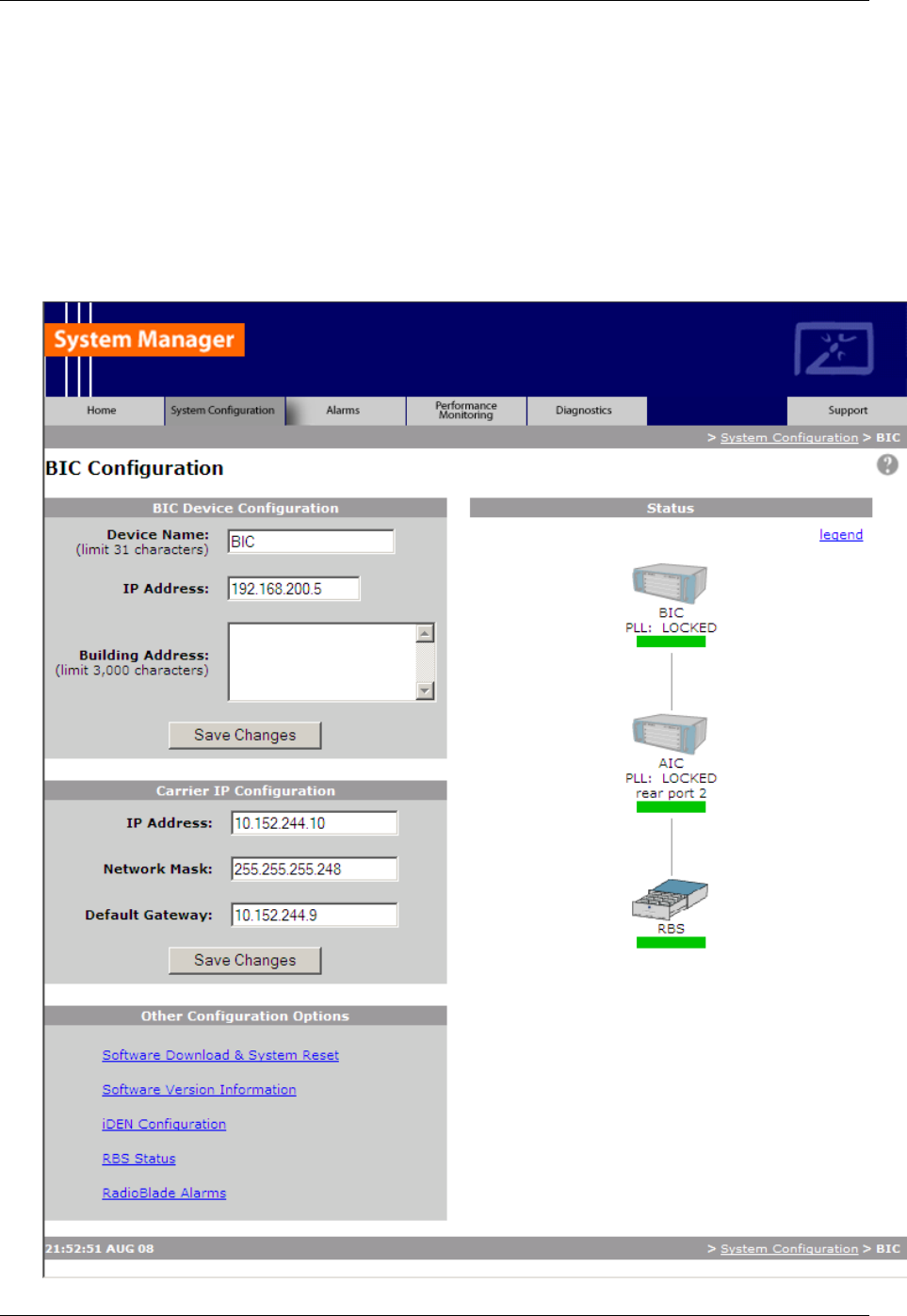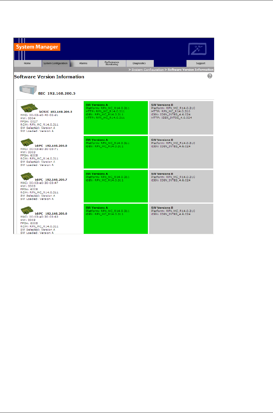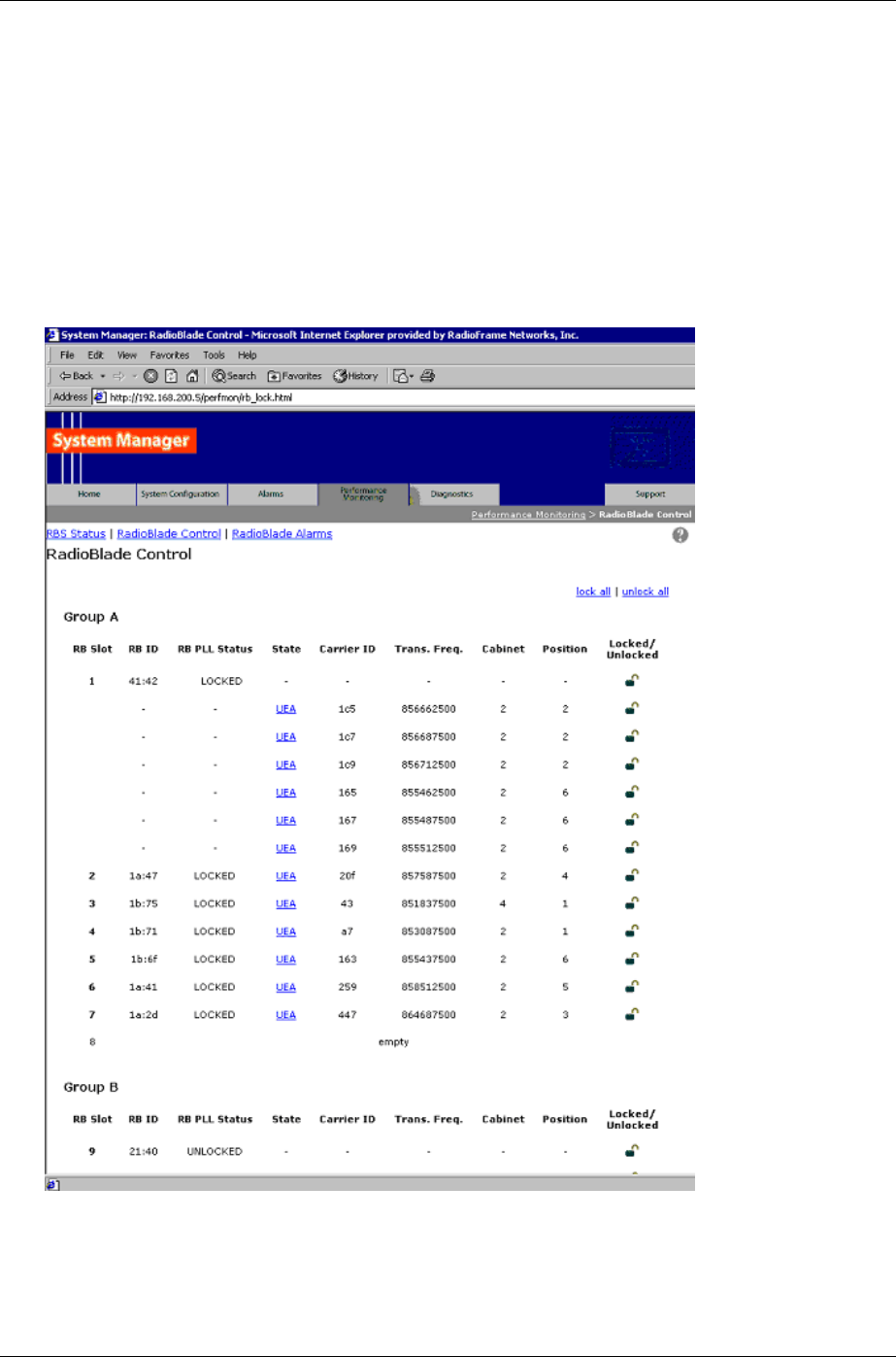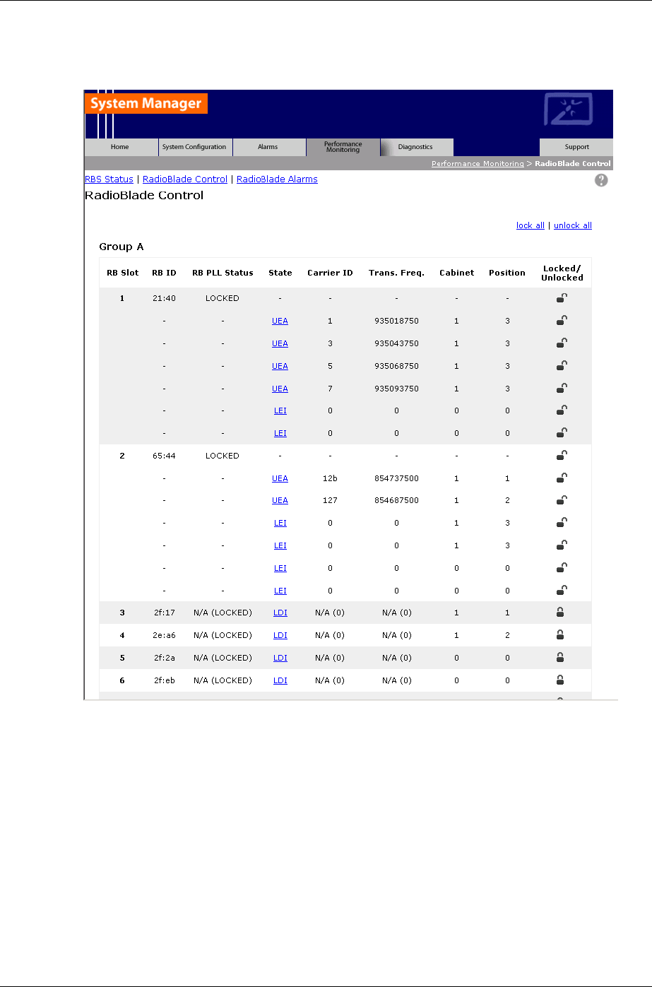 2 Display the RBS Status page, and verify that all RadioBlade transceiver status