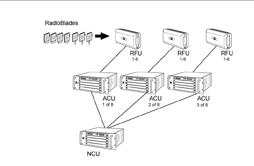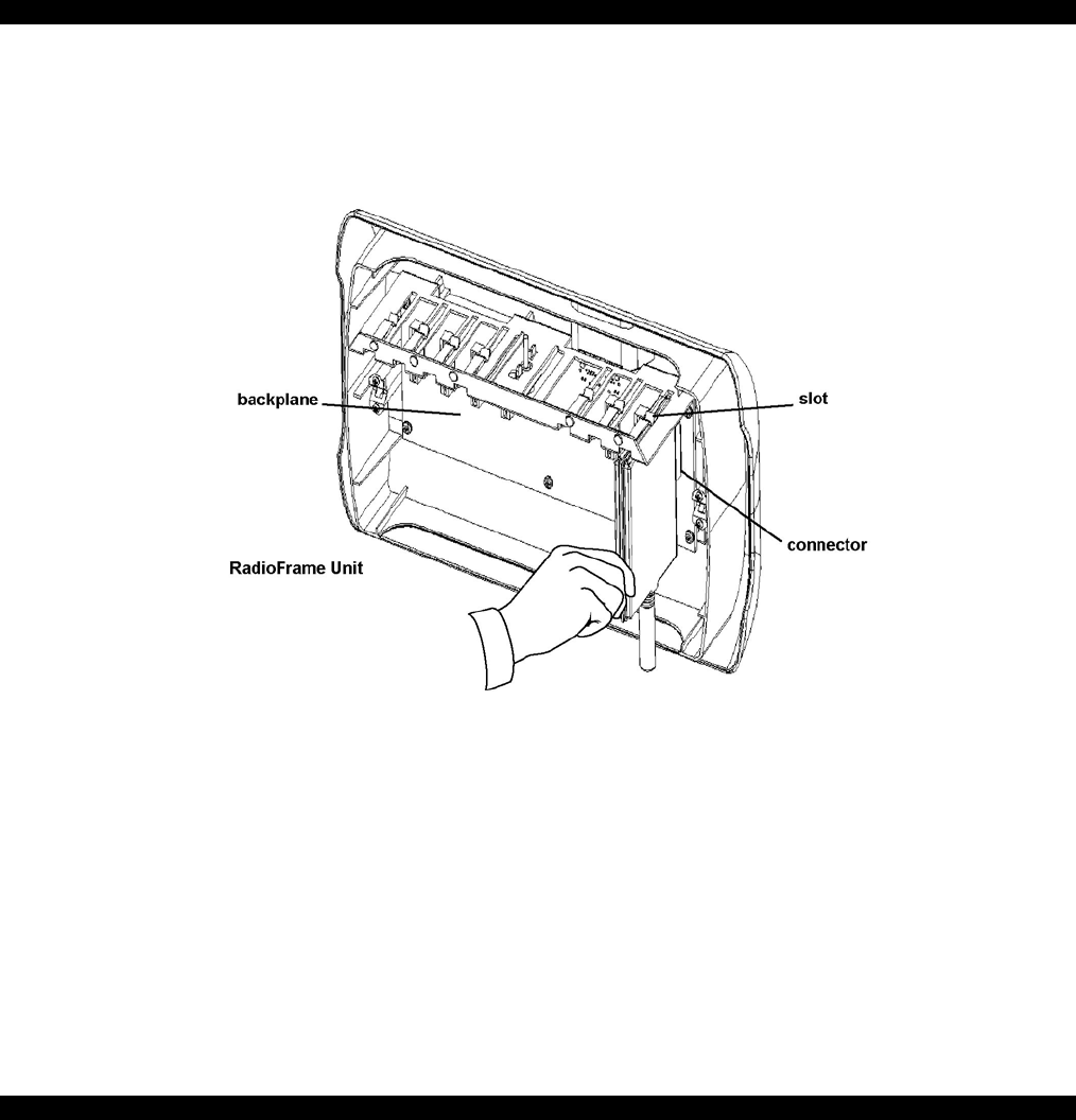 2. Insert one iDEN RadioBlade into the specified slot in the RadioFrame Unit (RFU) as shown in the diagram above. For