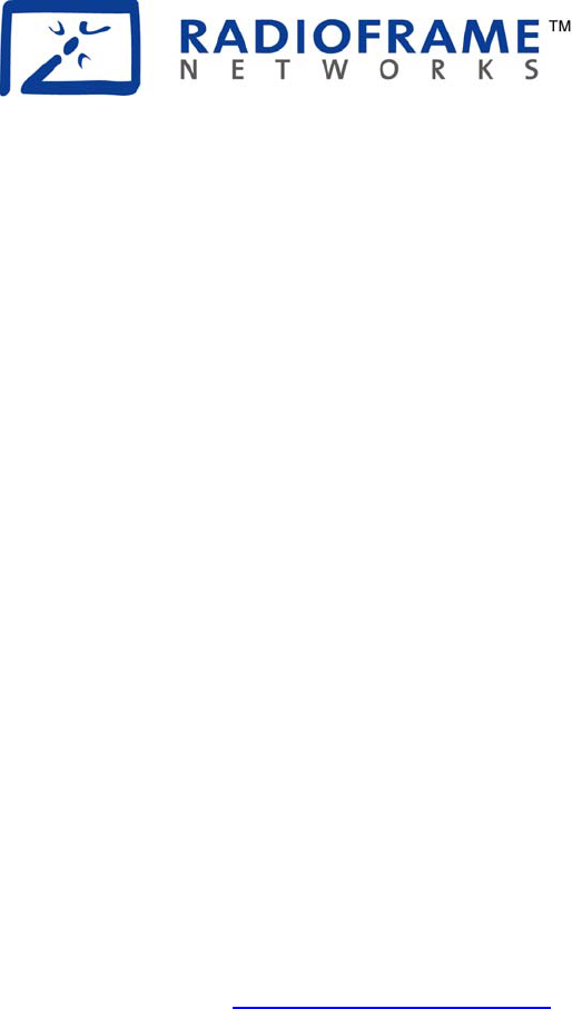 You may not use these or any other RadioFrame Networks trademarks or service marks without the written permission of RadioFrame