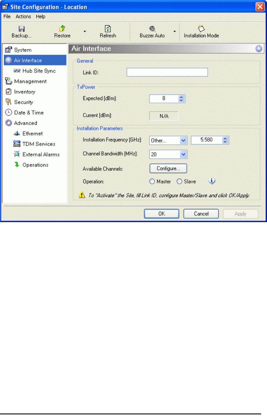 Click the Air Interface item in the left hand list. A window similar to the fol-