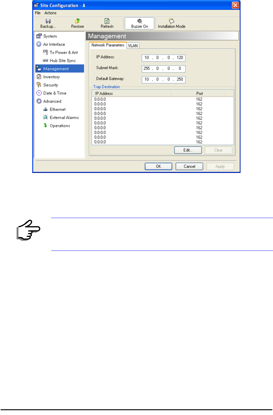 1. Click the required site button on the main tool bar of the RADWIN Man-