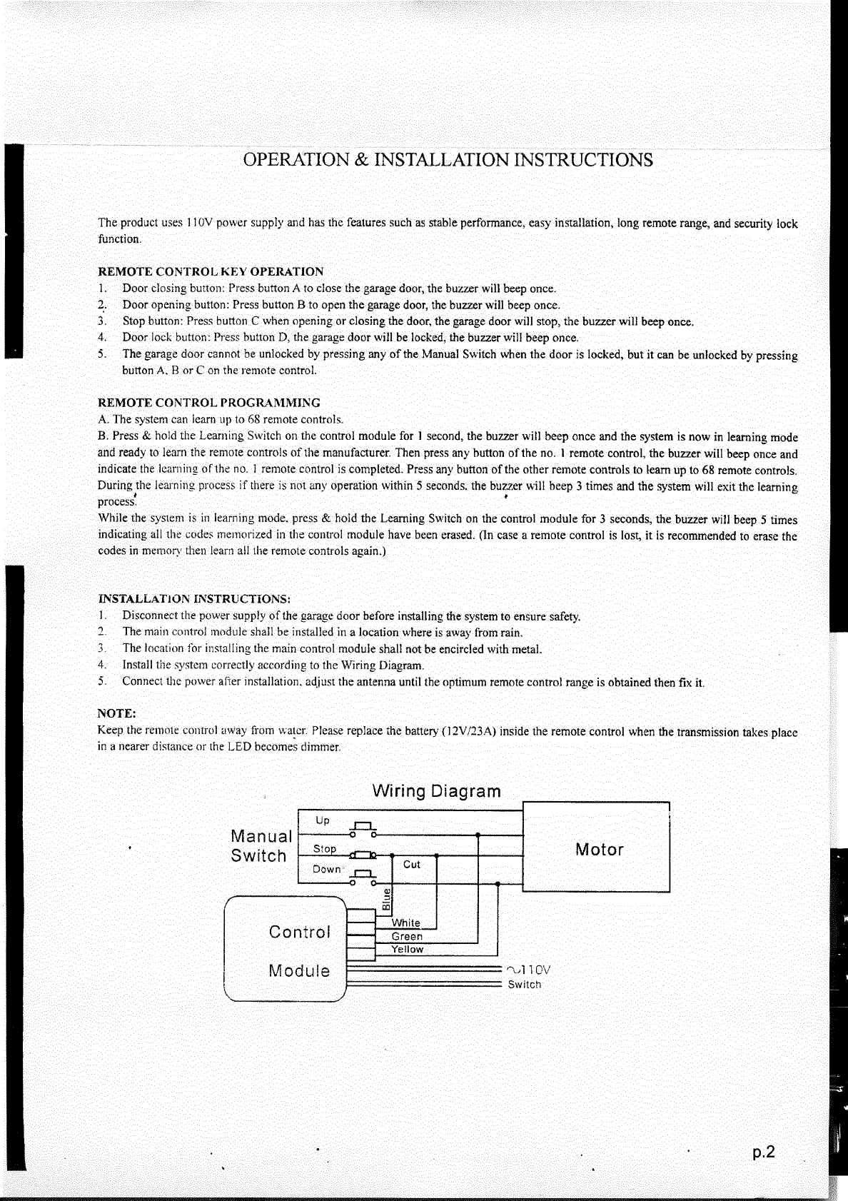 Ramset Automatic Gate Systems Inc. Hand transmitter: RAMSET I