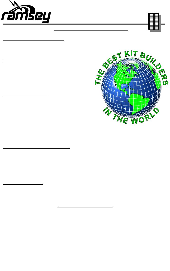 construction methods. To assist customers in such situations, Ramsey Electronics, Inc., reserves the