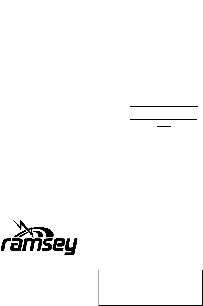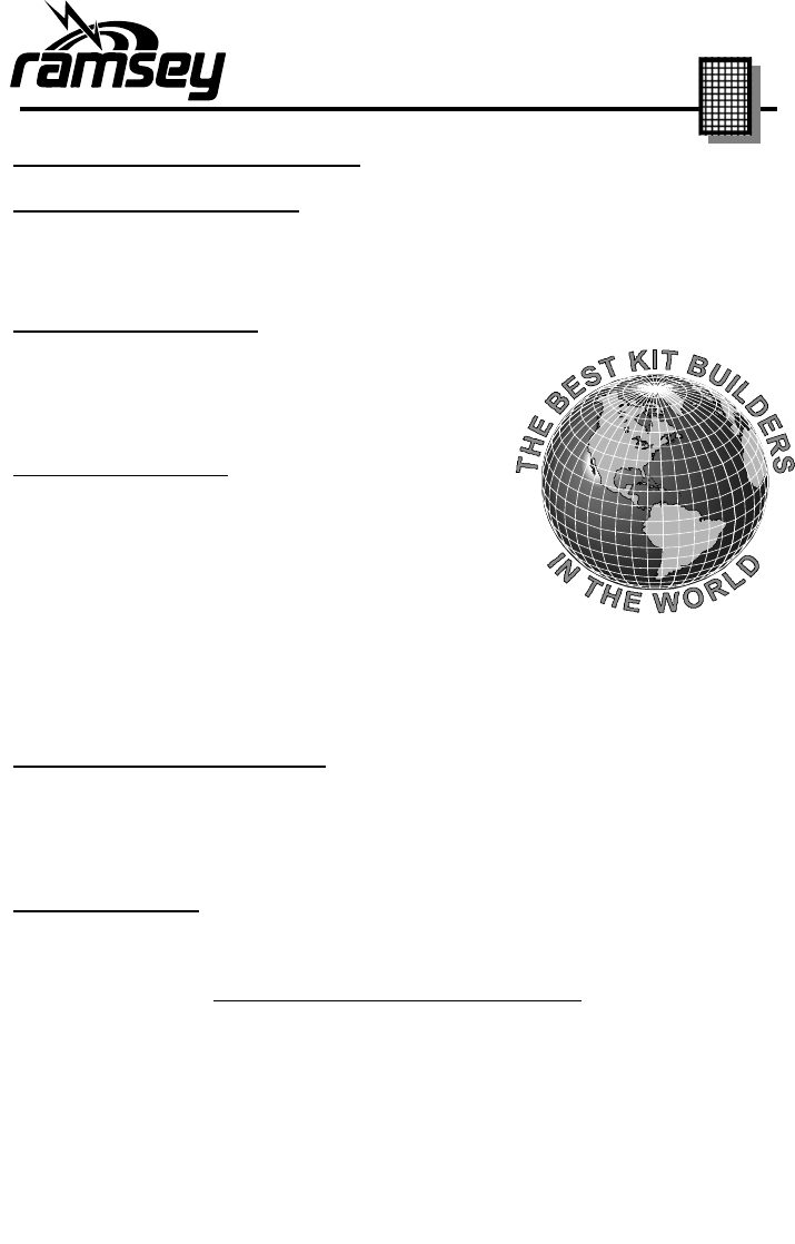 construction methods. To assist customers in such situations, Ramsey Electronics, Inc., reserves the