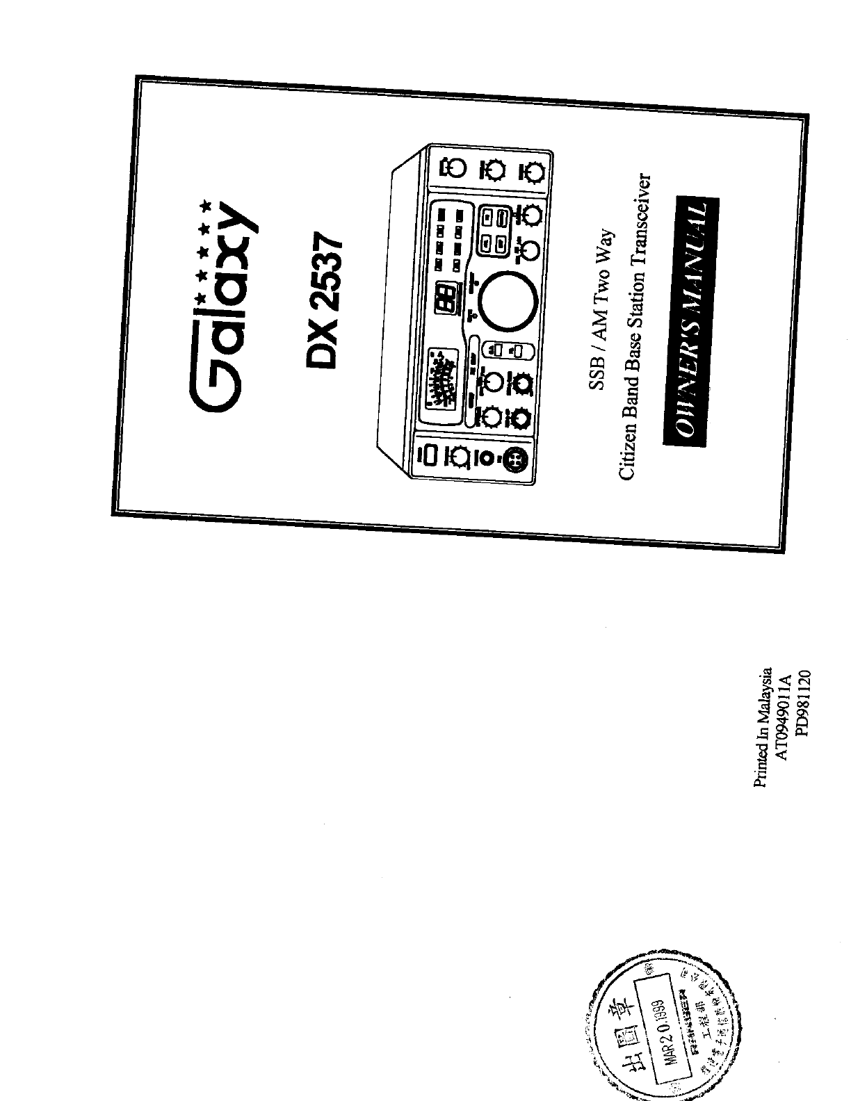 Ranger Electronic Communications DX-2537 CB Transceiver User Manual 47712