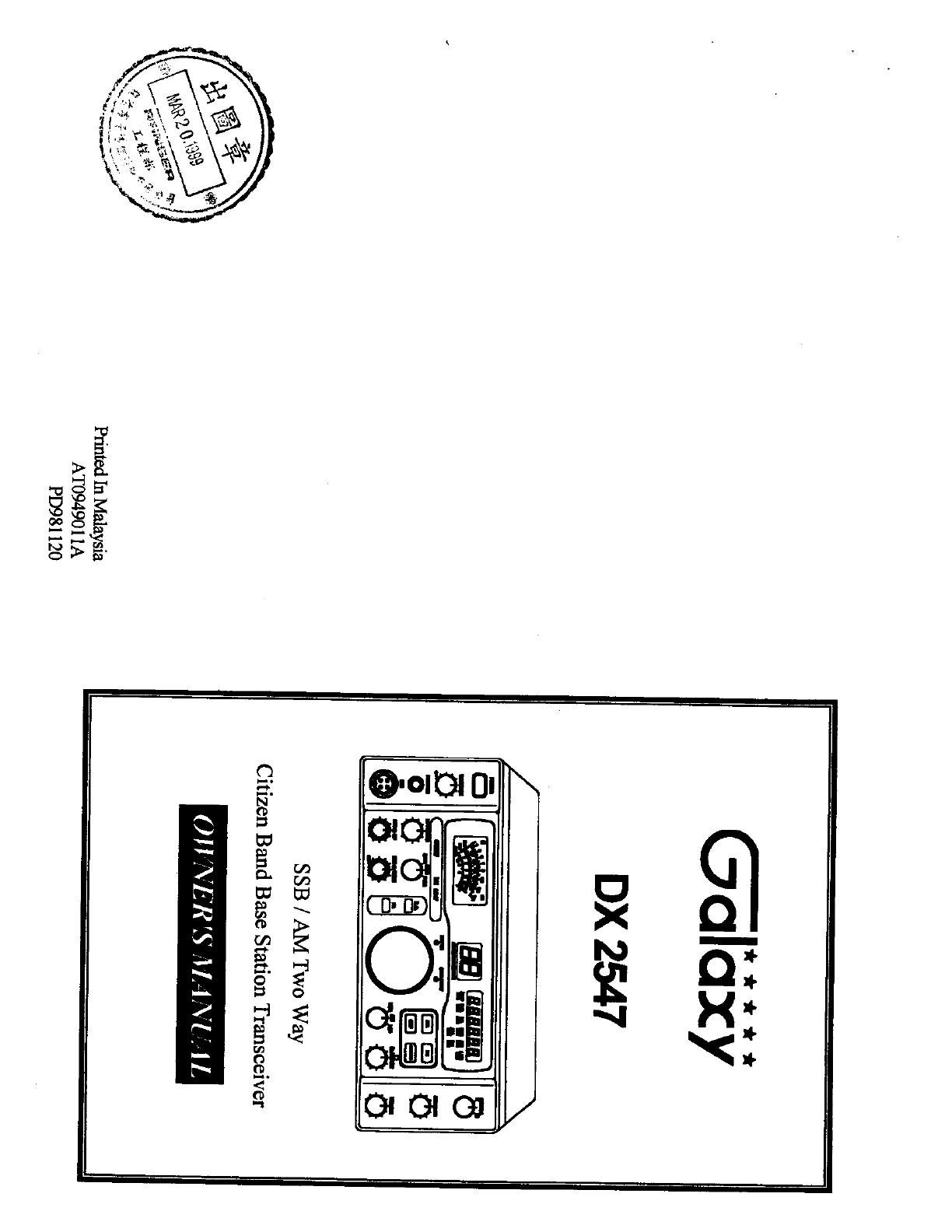 Ranger Electronic Communications DX-2547 CB Transceiver User Manual 47722