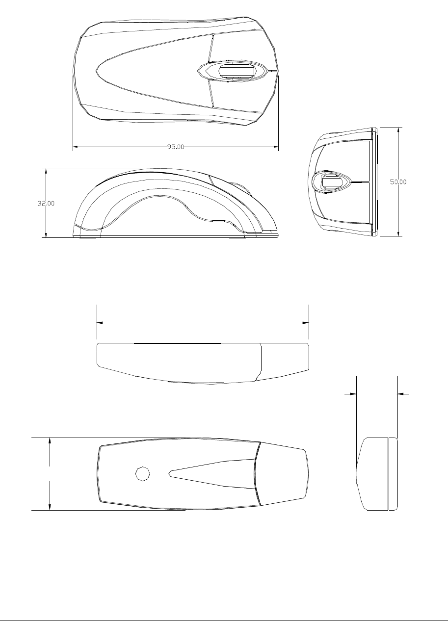 Mouse: 95mm(L) x 50mm(W) x 32mm(H)