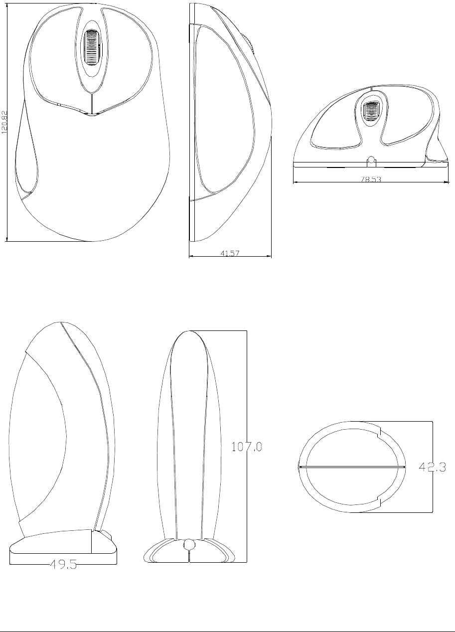 Mouse: 120.82mm(L) x 78.53mm(W) x 41.57mm(H)