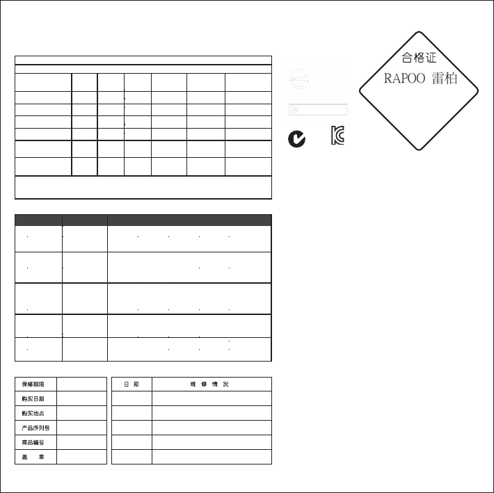 다. 자세한 내용은 www.rapoo.com/warranty을 참조하십시오.