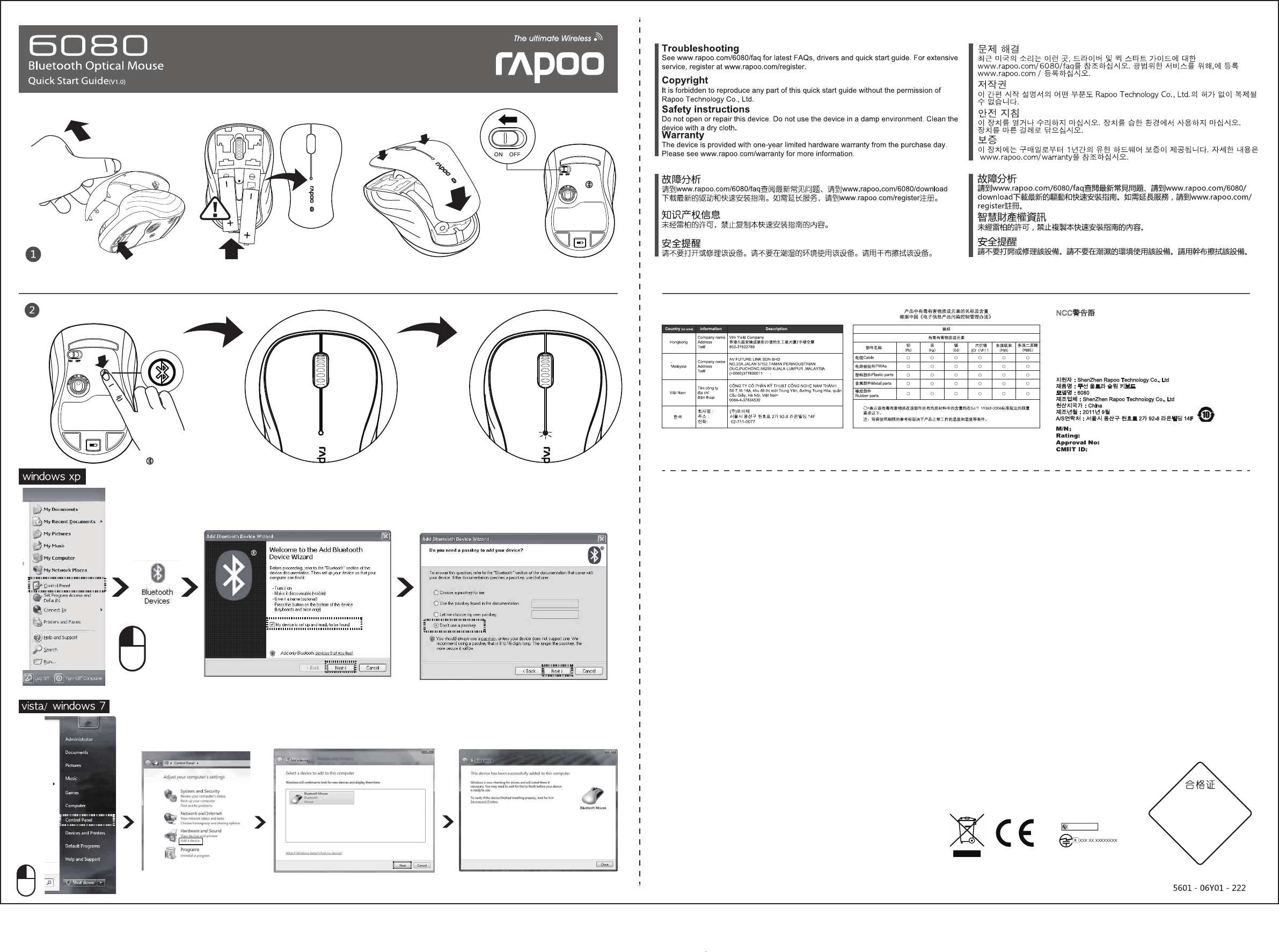 Rapoo Technology 6080 Bluetooth Optical Mouse User Manual