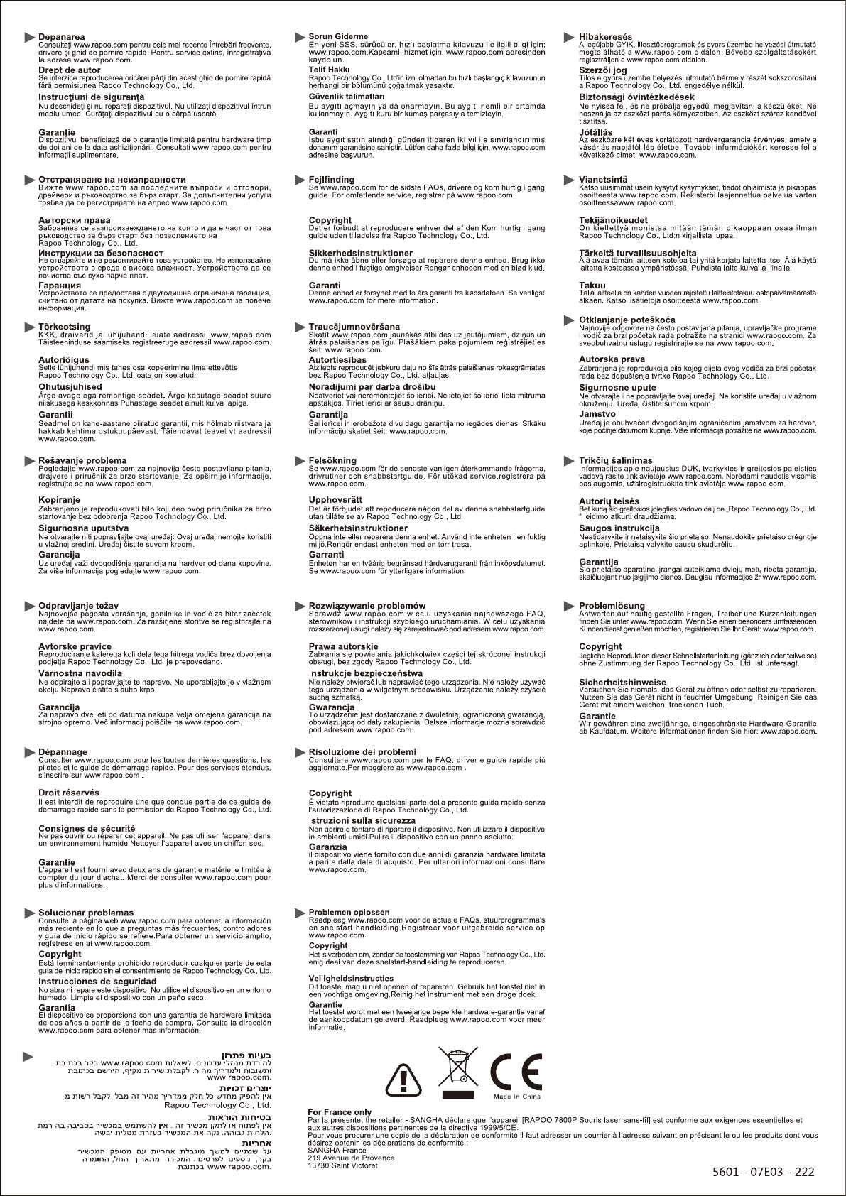 Rapoo Technology 7800P Wireless Laser Mouse User Manual 7800P