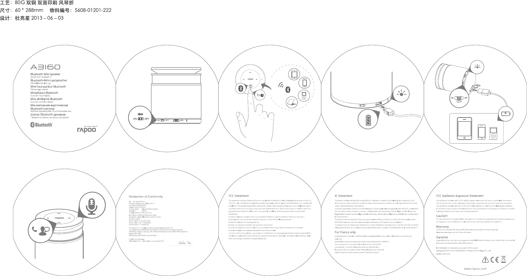 Rapoo Technology A3160 Bluetooth Mini Speaker User Manual