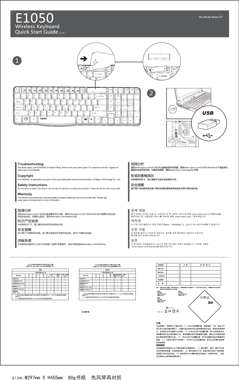 Rapoo Technology E1050 Wireless Keyboard User Manual