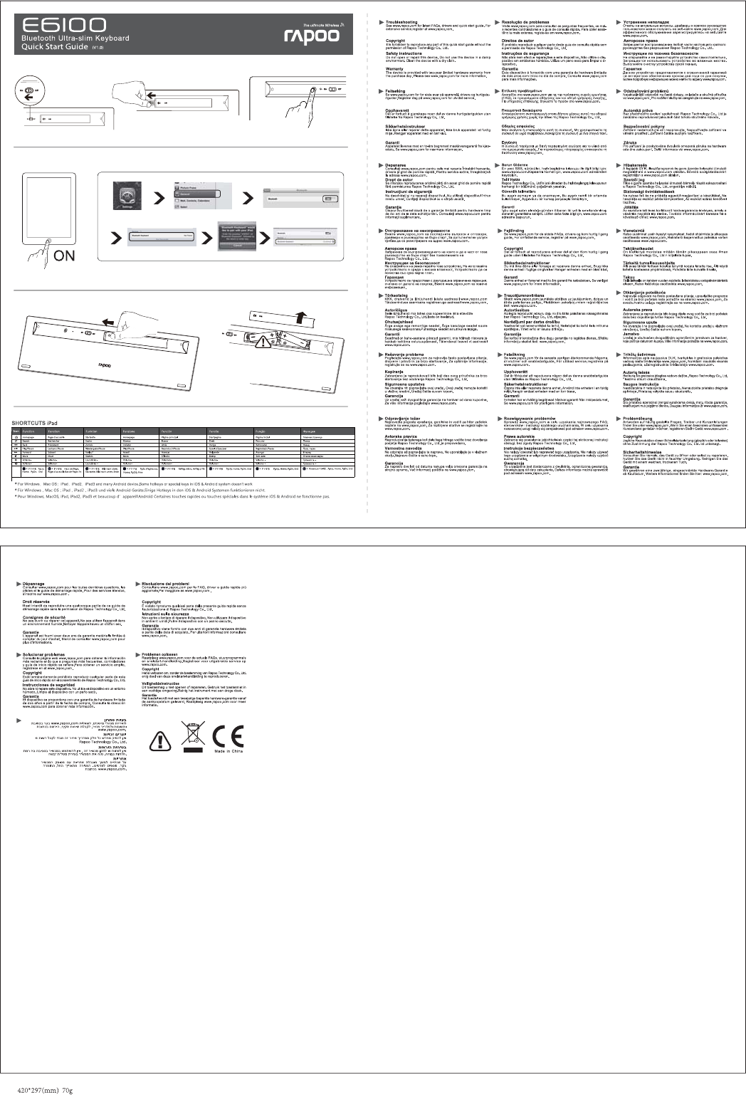 Rapoo Technology E6100 Bluetooth Ultra-slim Keyboard User Manual