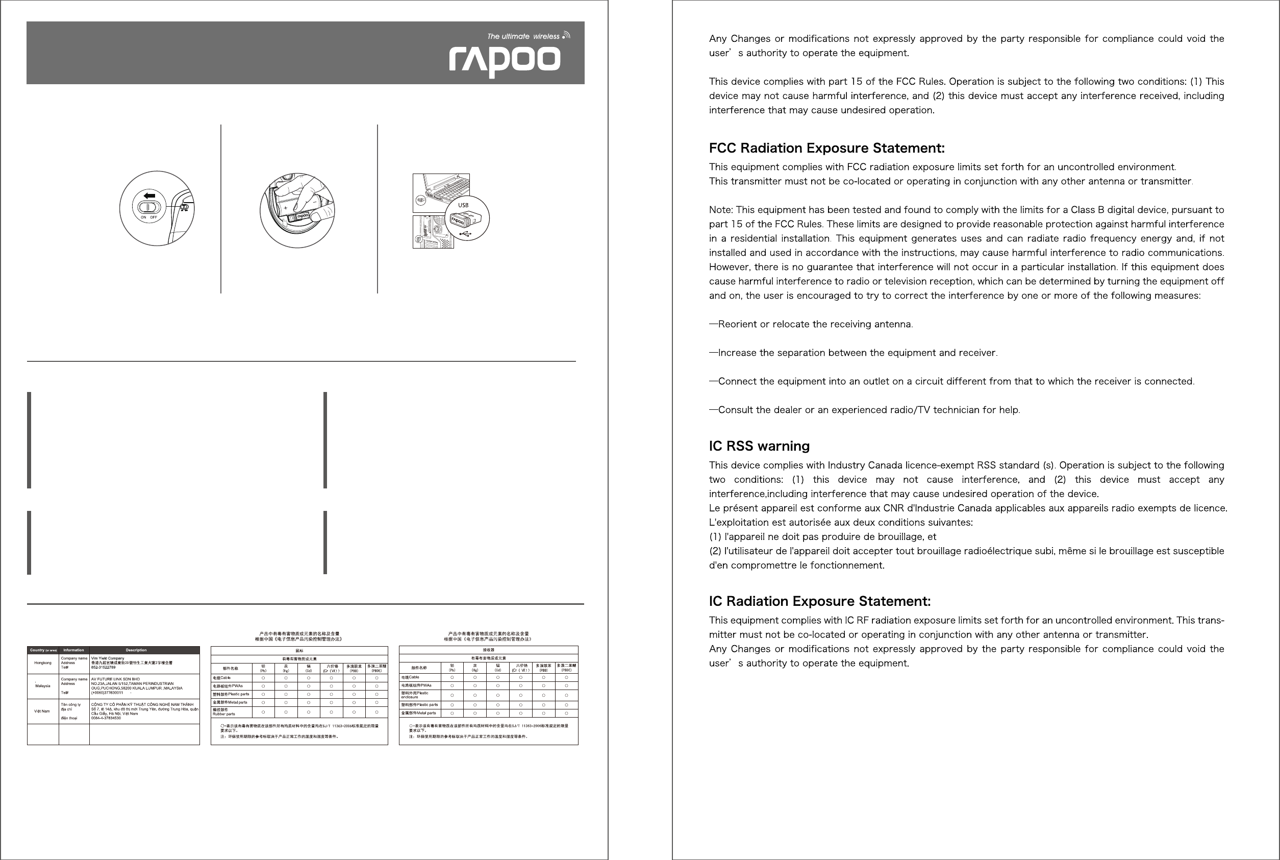 It is forbidden to reproduce any part of this quick start guide without the permission of Rapoo Technology Co., Ltd.
