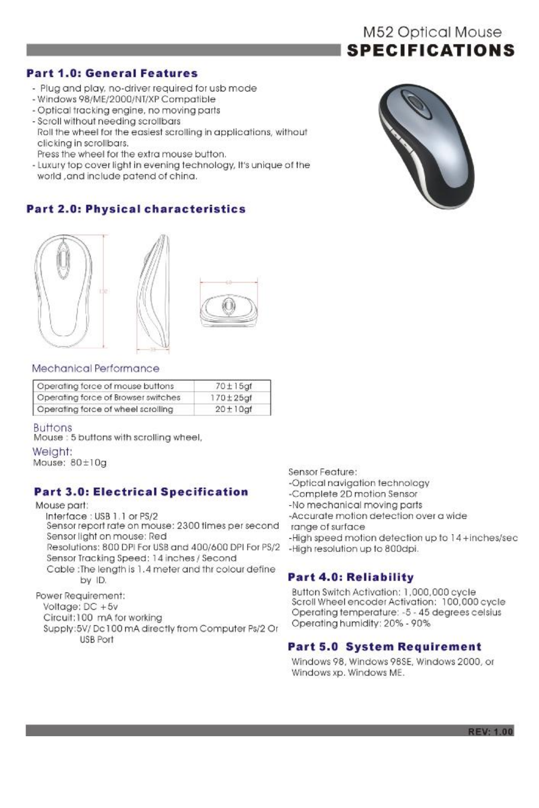 Rapoo Technology M52WC WIRELESS OPTICAL MOUSE User Manual
