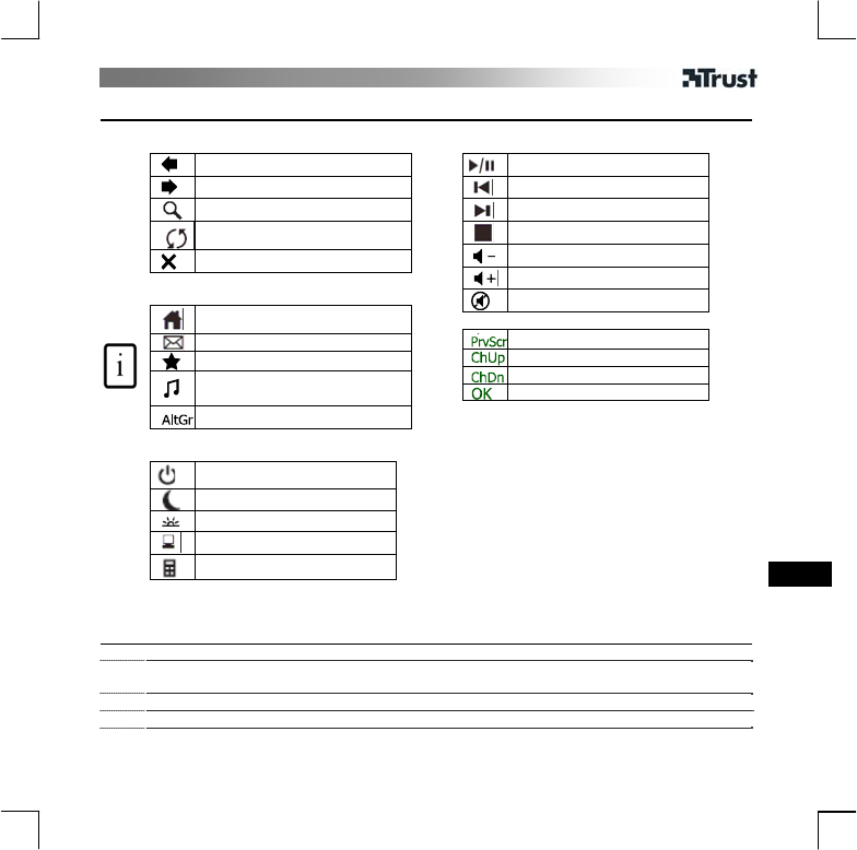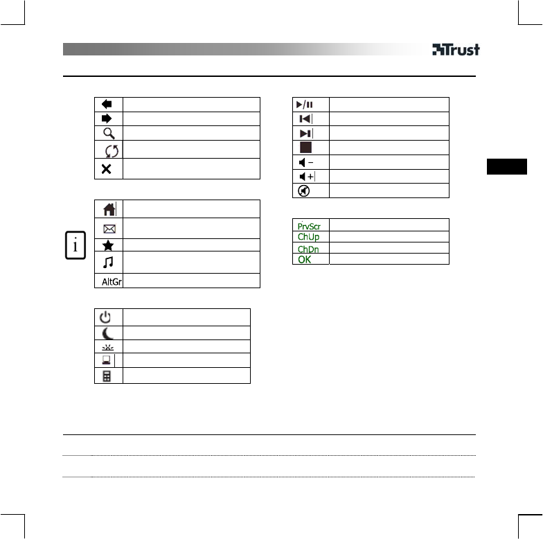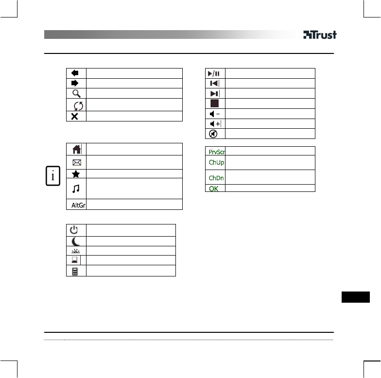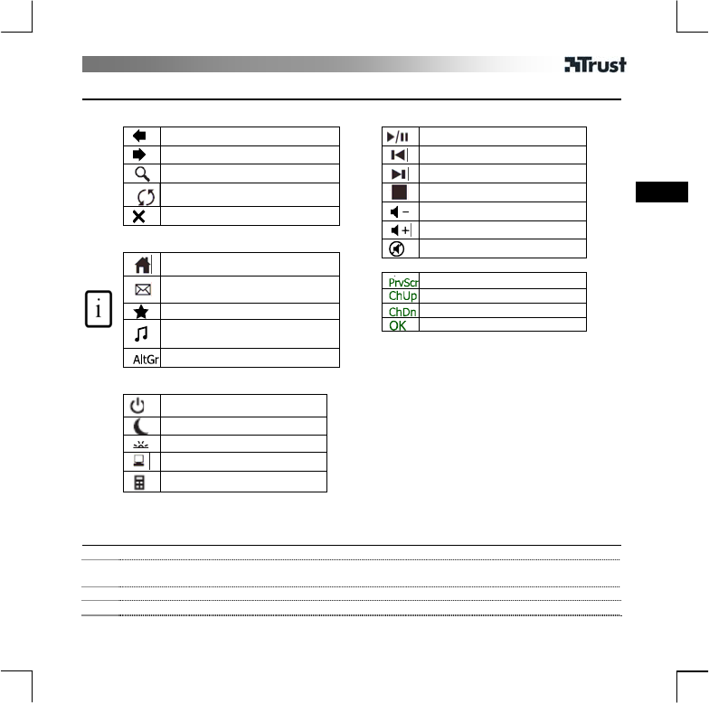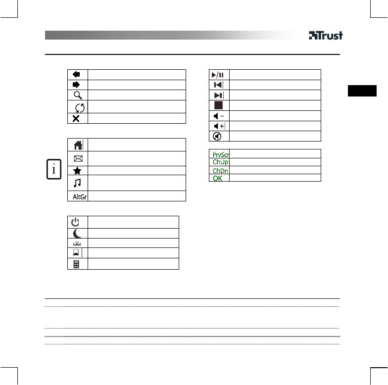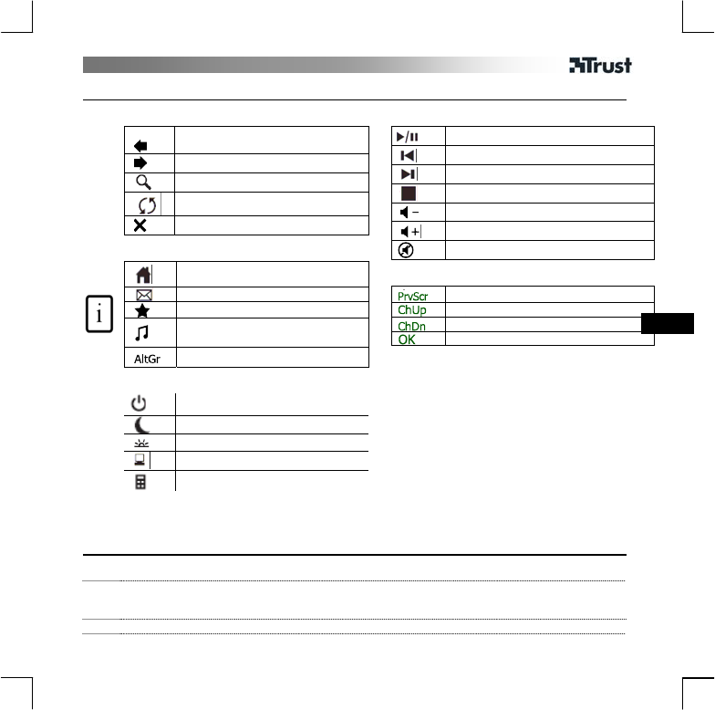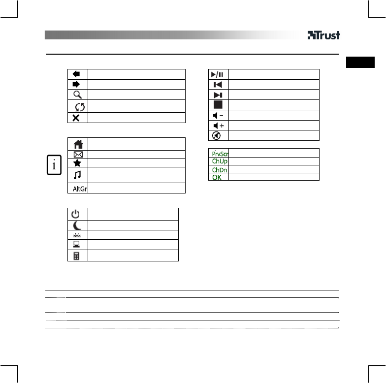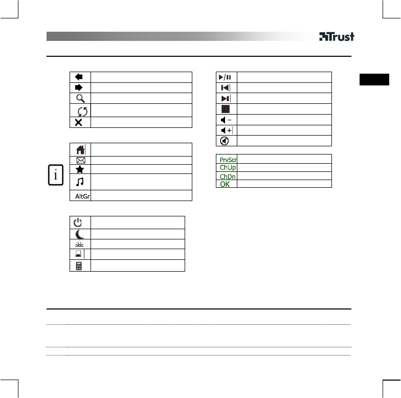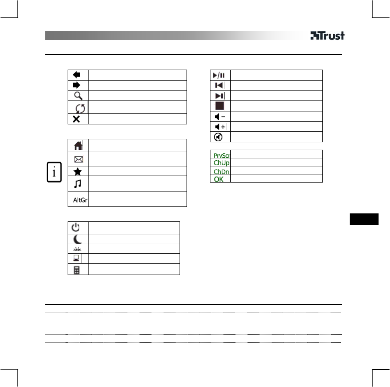 • Launch keys will start the default internet browser, E-mail program and Mediaplayer installed on your PC.