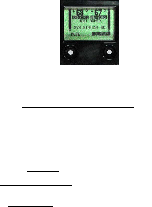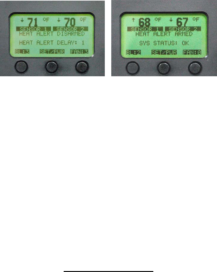 independent temperature readings, HEAT ALERT ARMED, SYS STATUS: OK.