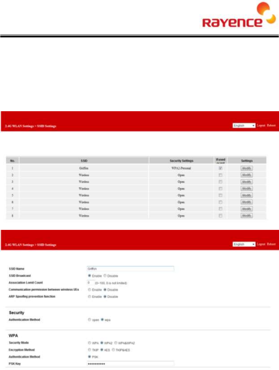 This menu displays the SSID property of the 2.4G wireless LAN.