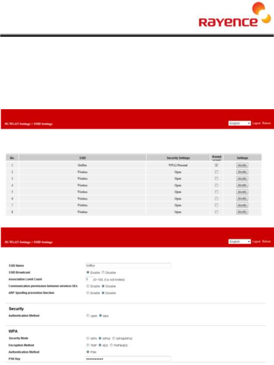 • SSID Name: Defines the SSID name. You can use Korean, English alphabets, number, space,