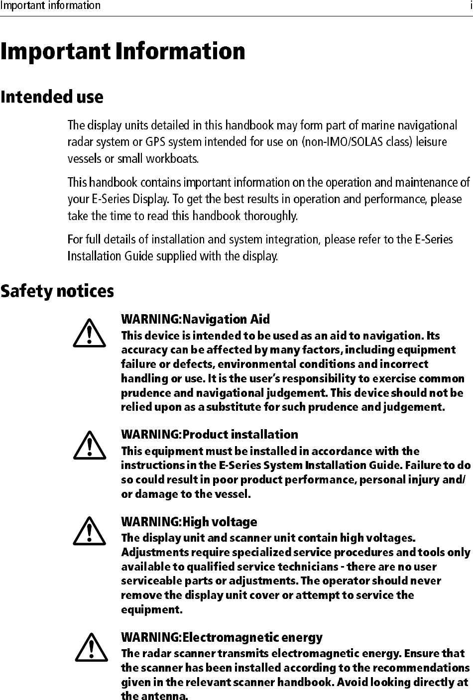 Raymarine UK Ltd. Light Marine Navigational Radar E Series Networked Display Ref Manual Part 1