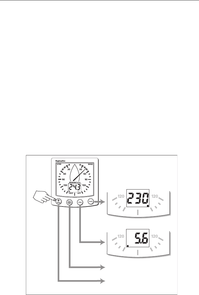 1. Use the vmg (decrement) and tack (increment) keys to switch from the Wind
