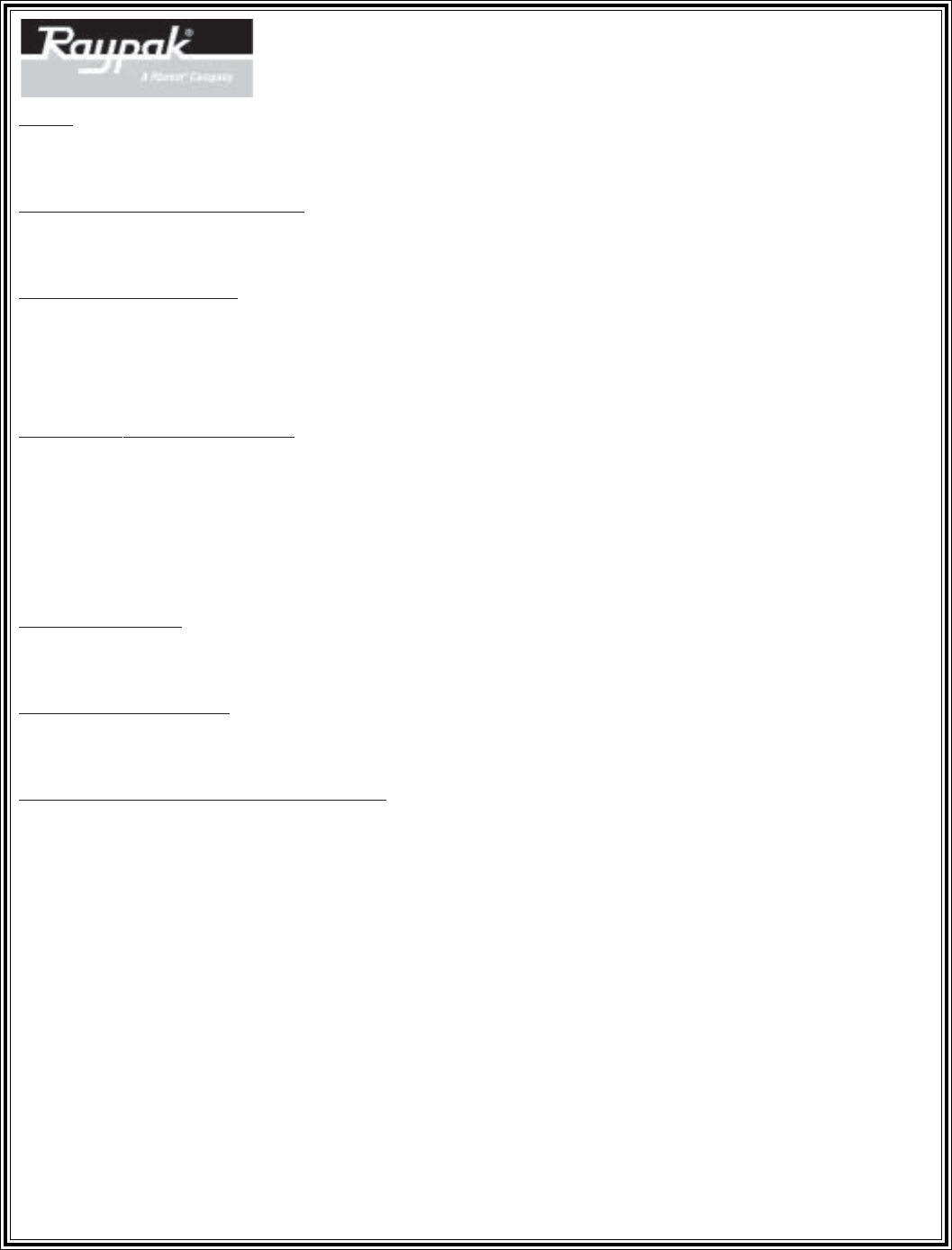 Raypak Canada LTD, 2805 Slough Street, Mississauga, Ontario, Canada L4T 1G2 (905) 677-7999 FAX (905) 677-8036